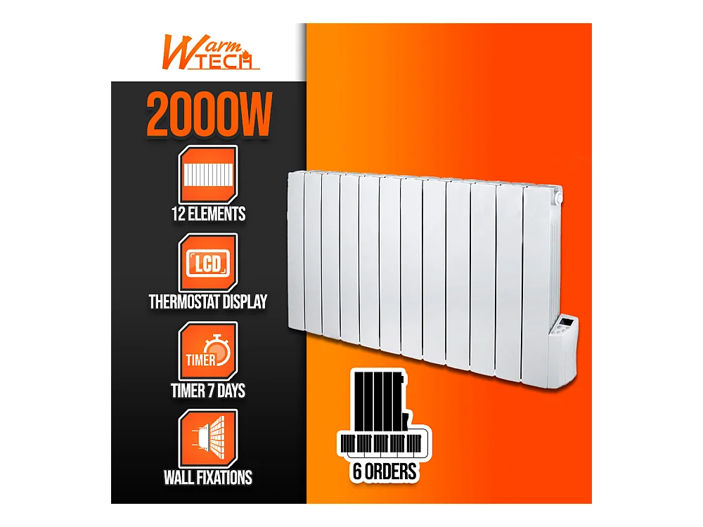 Radiateur a inertie fluide 2000W 12 éléments - Warm Tech