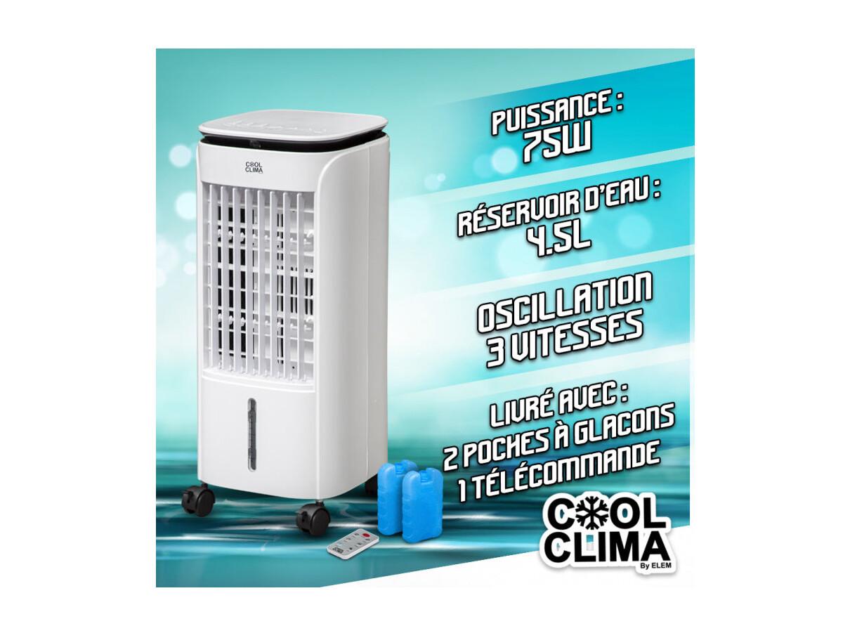 Rafraîchisseur d'air Cool Clima 75 W - 4,5 L avec télécommande