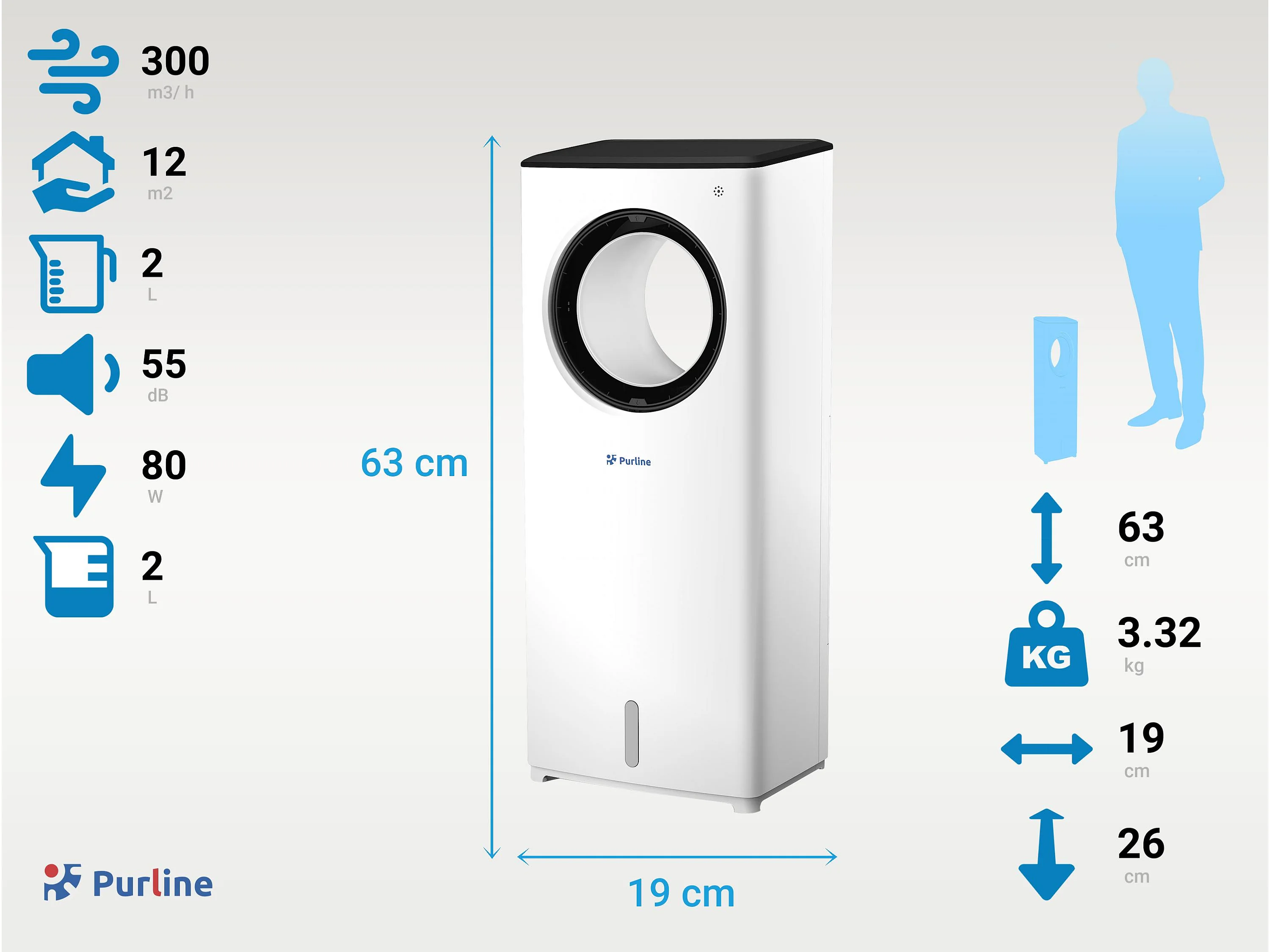 Rafraichisseur d'air par évaporation sans pales avec 3 vitesses et 2L