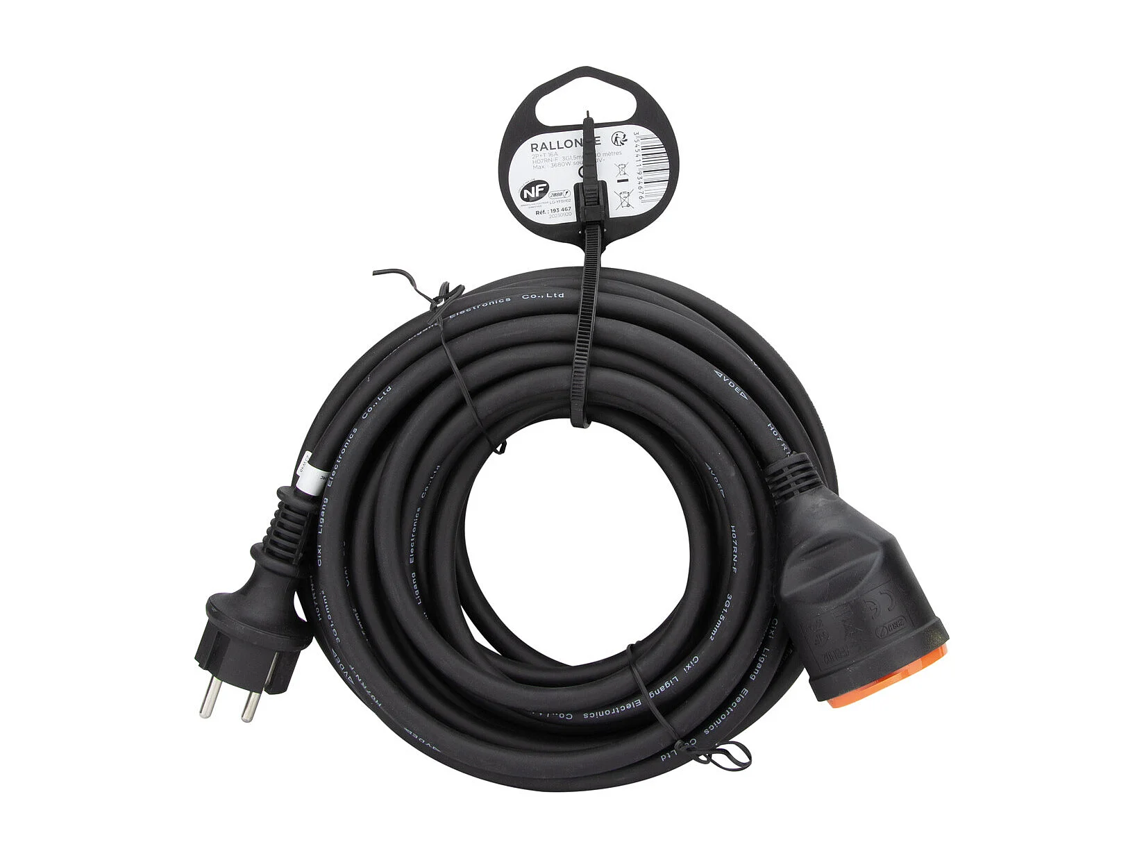 Rallonge étanche 2P+T H07RN-F 3x1,5mm² 10m avec clip de fixation - Orange - Zenitech