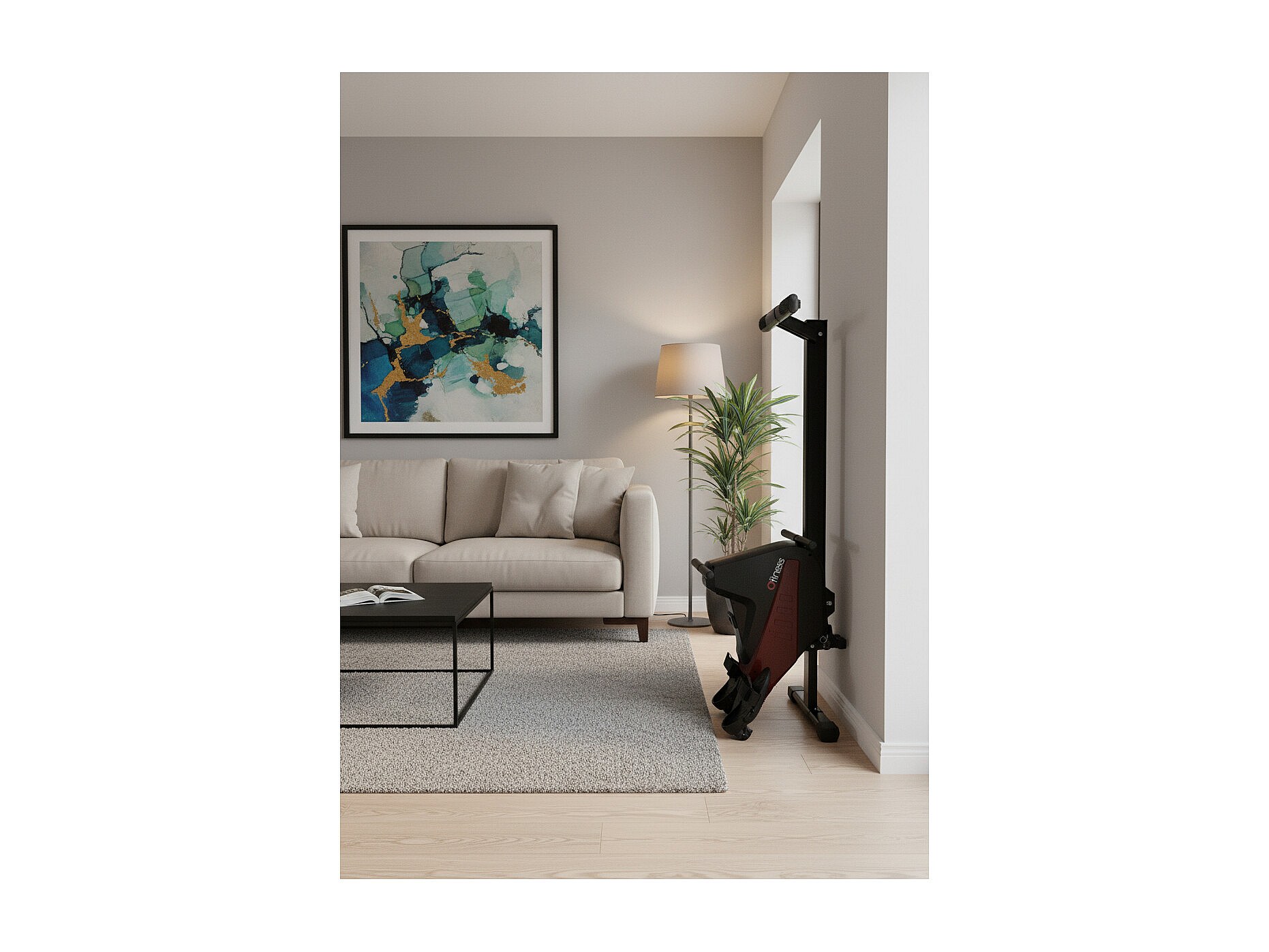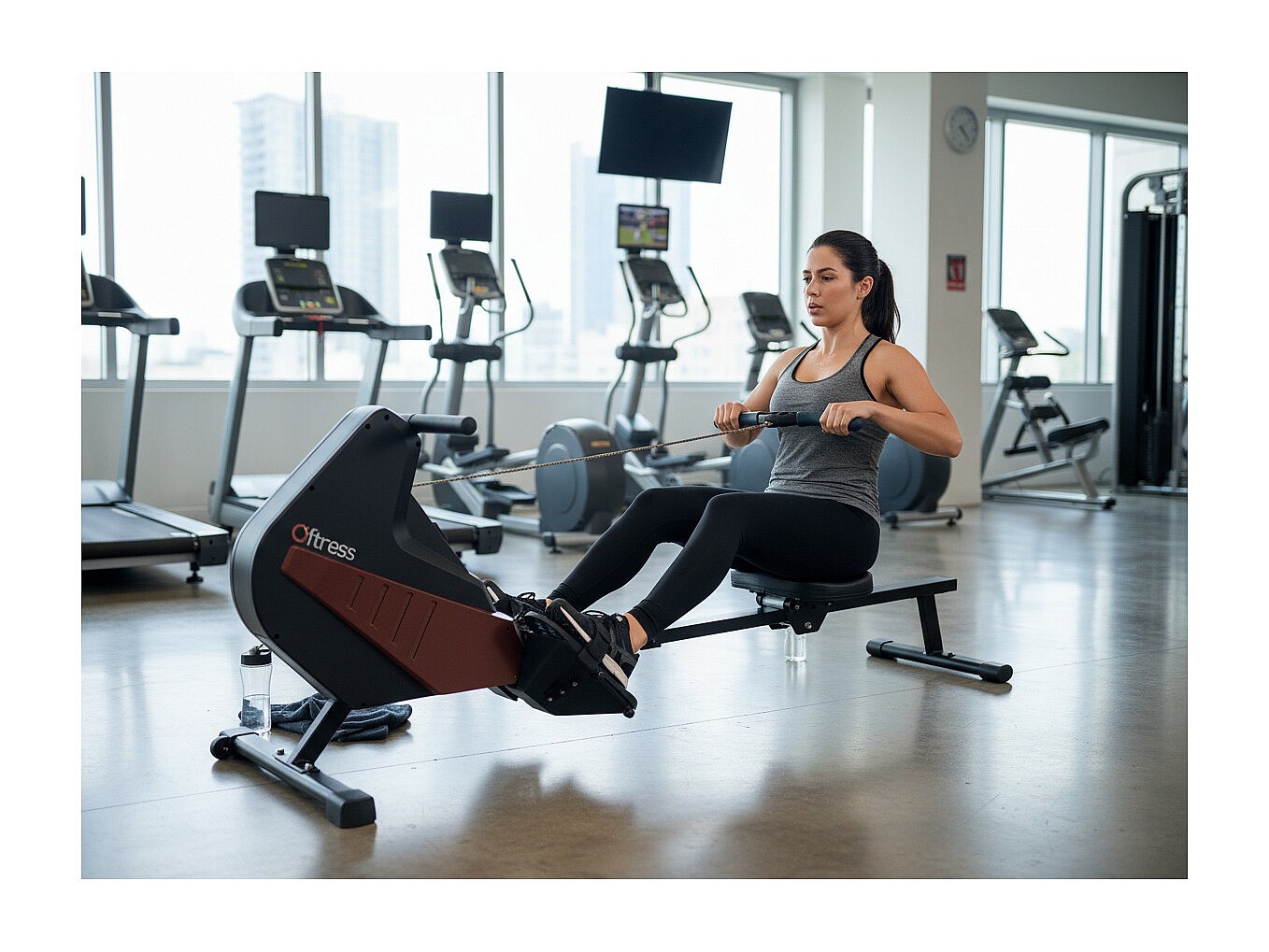 Rameur d'appartement scandinave - O'fitness - Compteur 5 fonctions - En acier