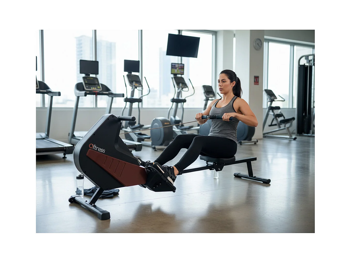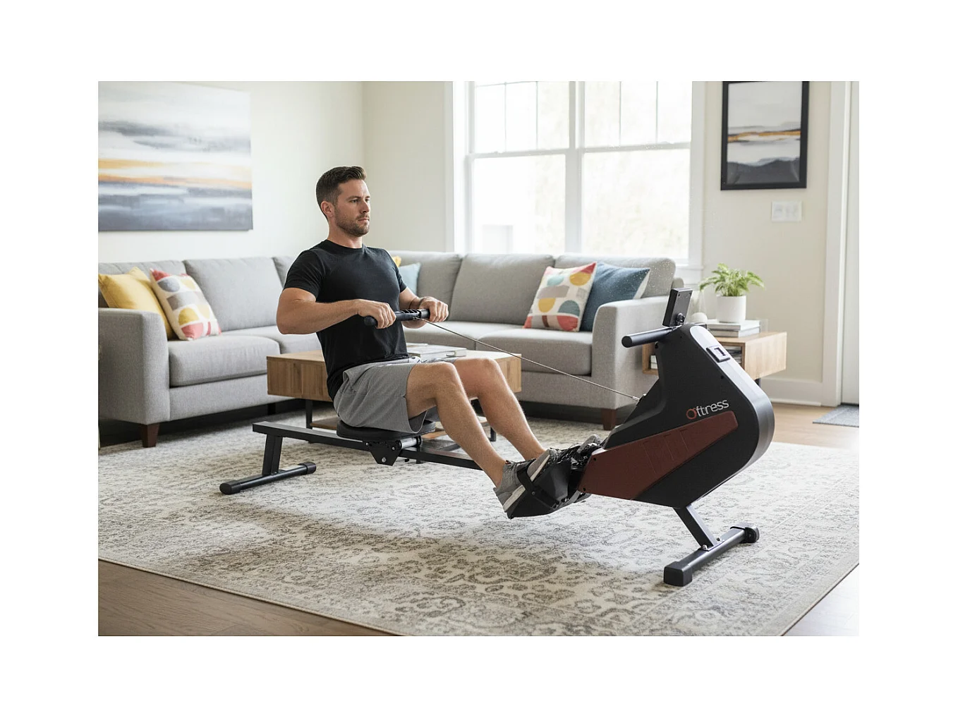 Rameur d'appartement à tirage central - O'Fitness - Compteur 5 fonctions - Roue magnétique : 5 Kg