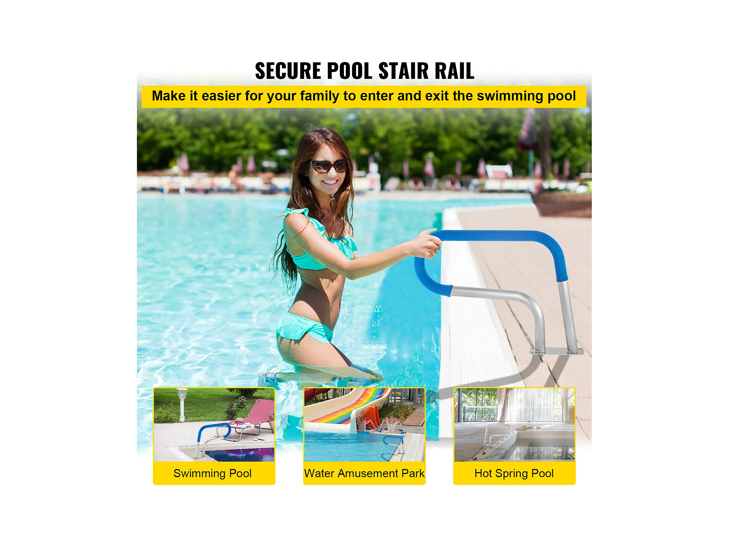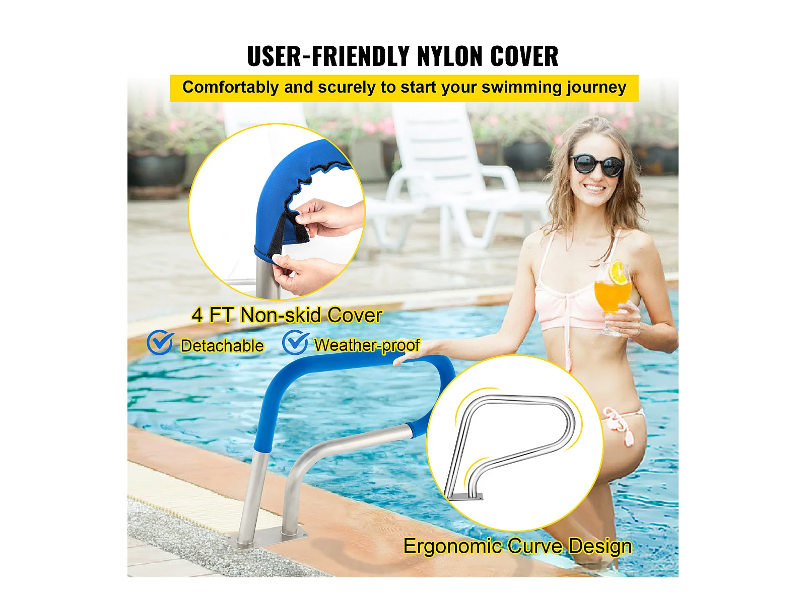 Rampe de Piscine SucceBuy Pool Rail 39x32 » Garde-corps de Piscine en Acier Inoxydable avec Couverture Grip