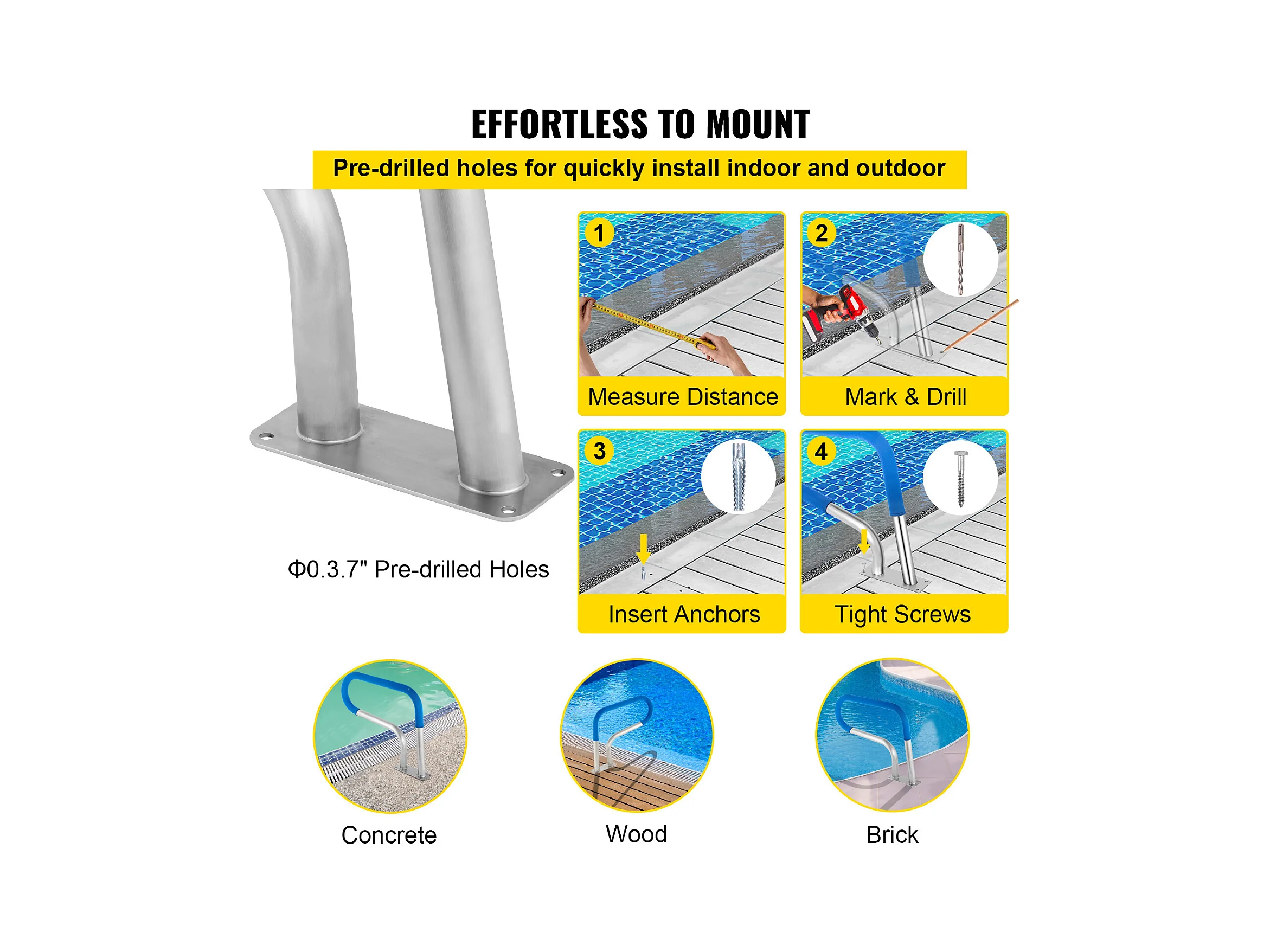 Rampe de Piscine SucceBuy, Rampe en Acier Inoxydable avec Plaque de Base, pour Piscines