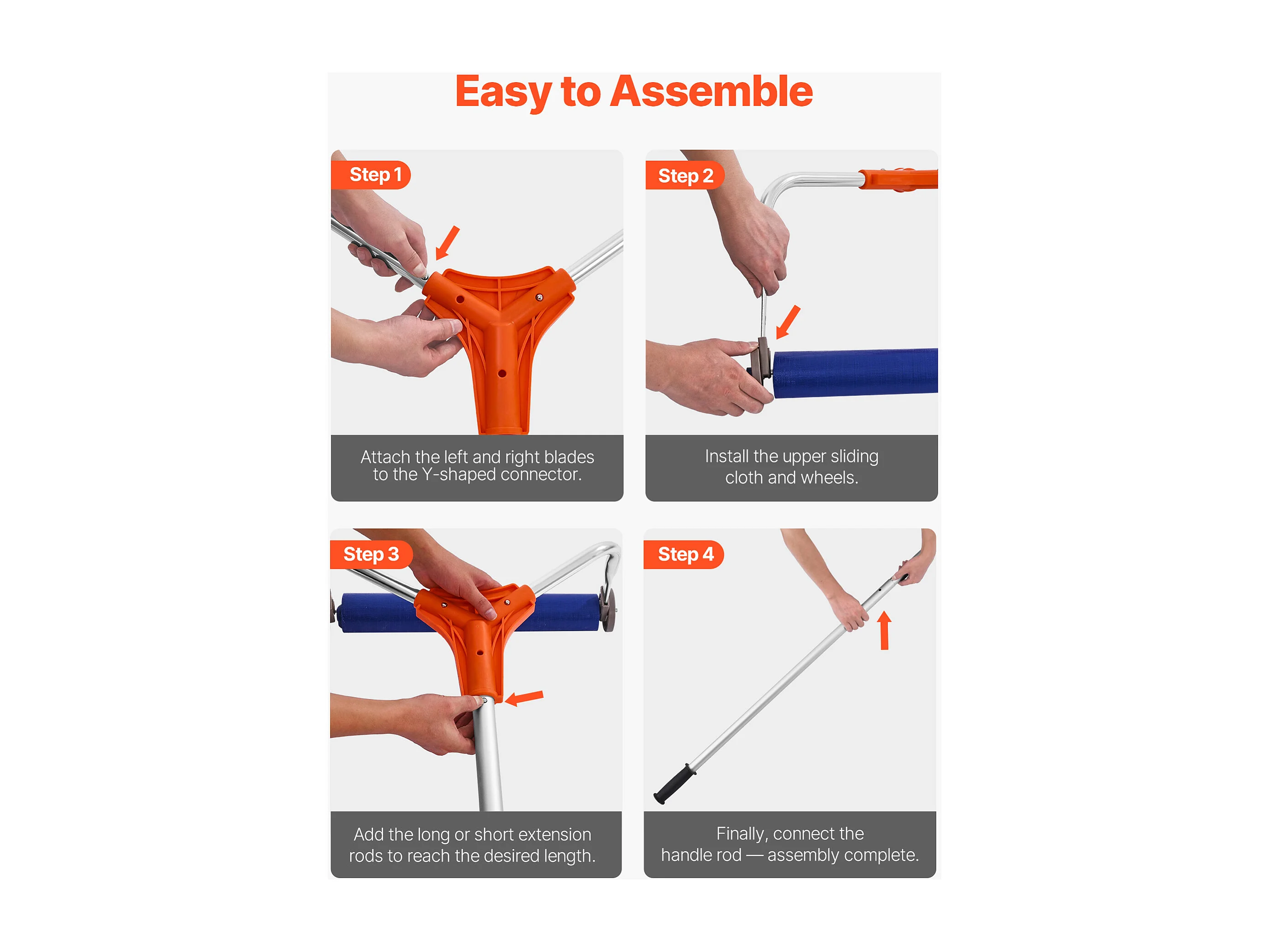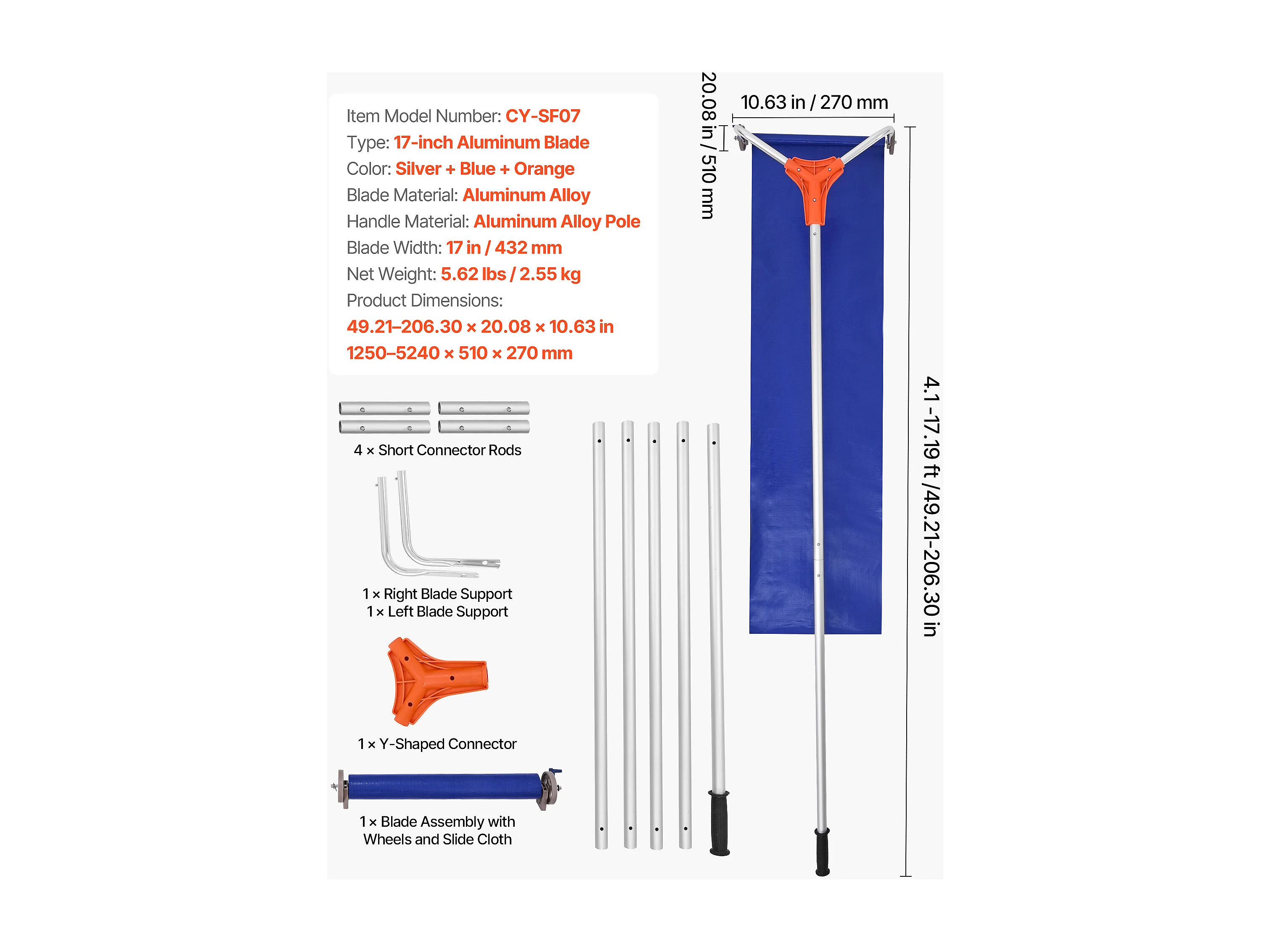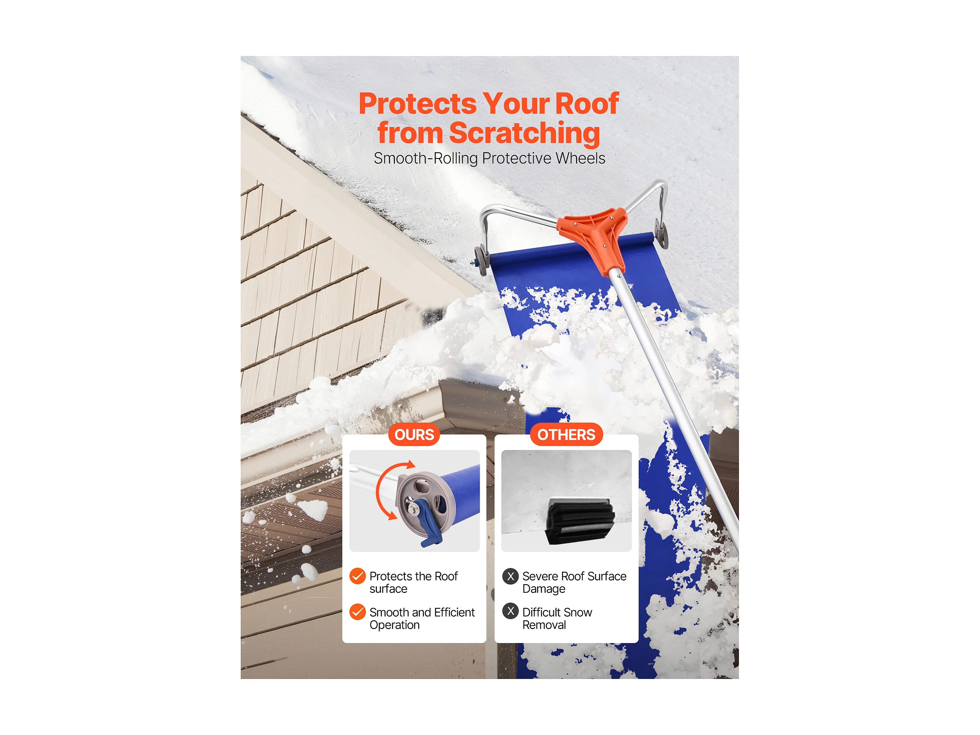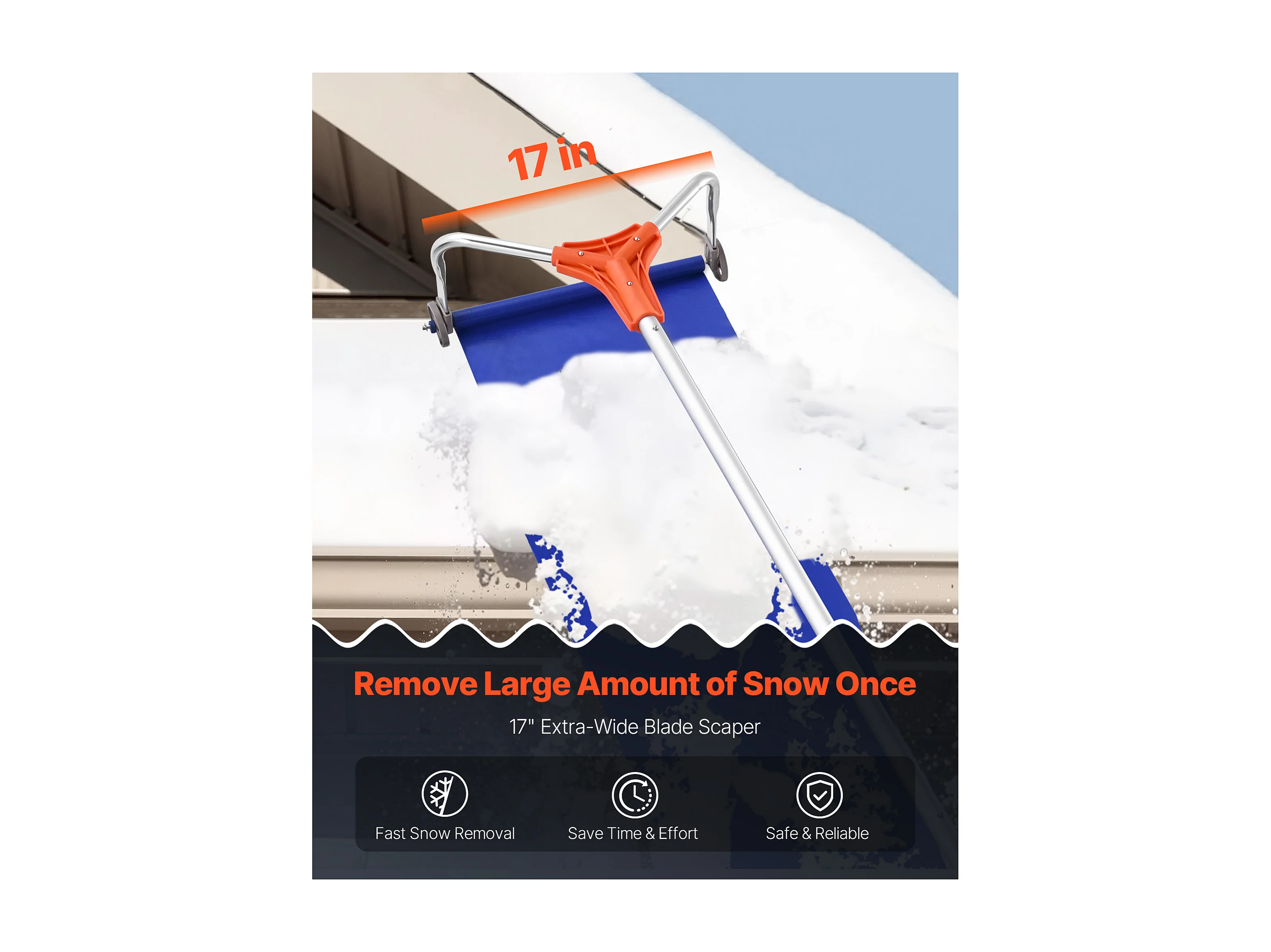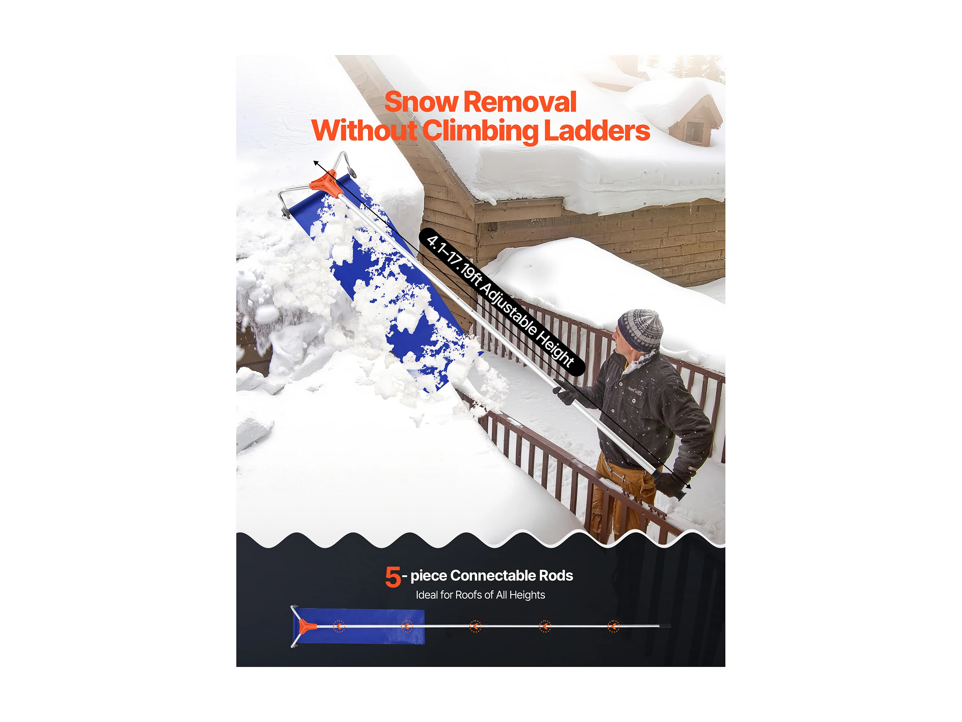 Râteau à Neige SucceBuy de Toit, 43 cm, Râteau de Déneigement Réglable 1,25-5,24 m, avec Lame en Aluminium, Roues Inférieures, Poignée Antidérapante