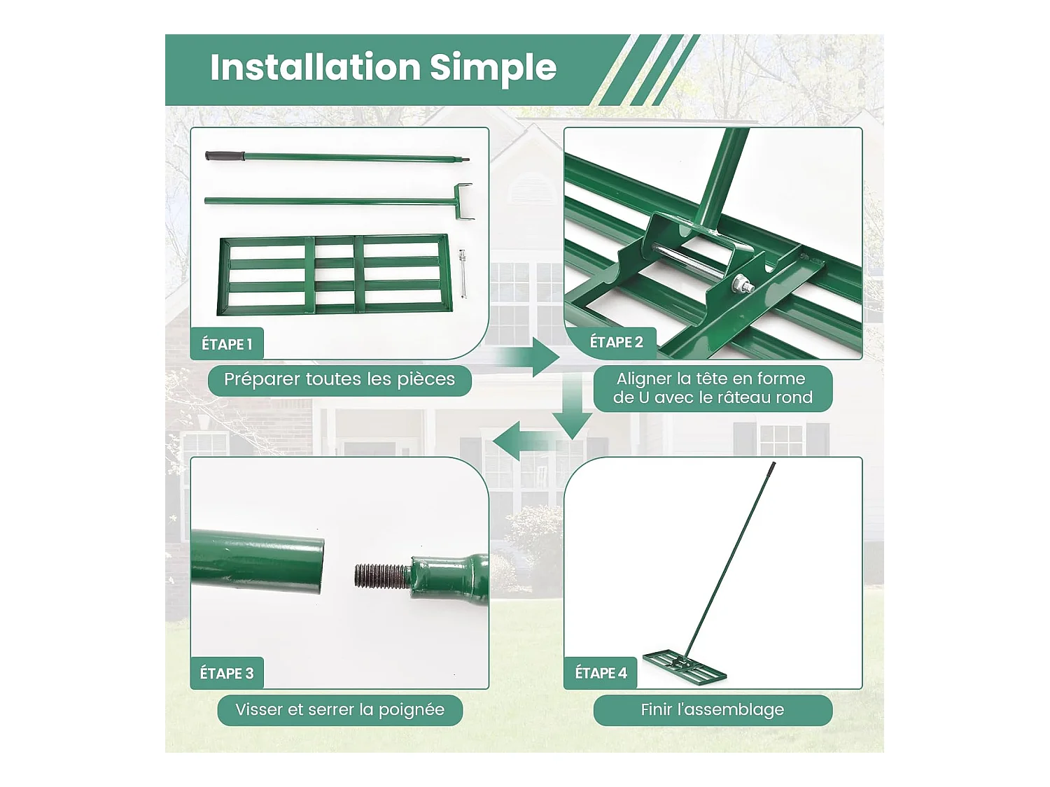 Râteau de Nivellement de Pelouse SucceBuy 121.9 cm x 25.4 cm avec Manche en Acier 198.1 cm