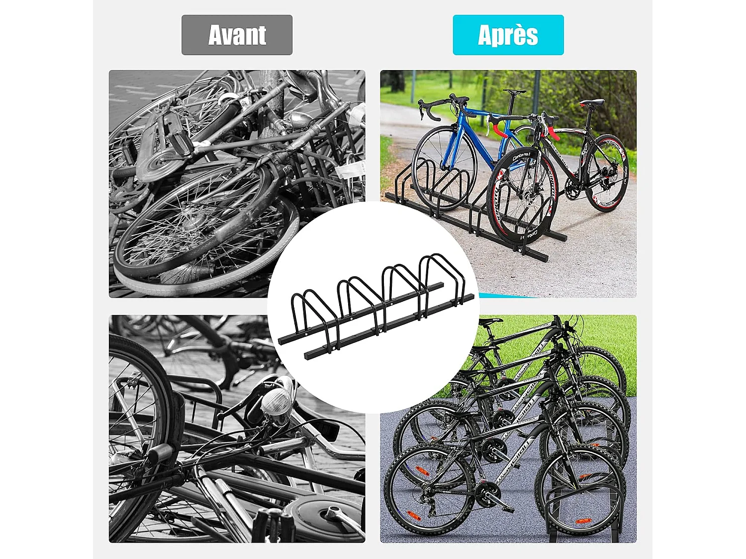 Support à Vélo Autoportant SucceBuy en Acier au Carbone pour Rangement de Bicyclettes, Garage et Intérieur avec Pneus 76,2 mm, Capacité pour 6 Vélos