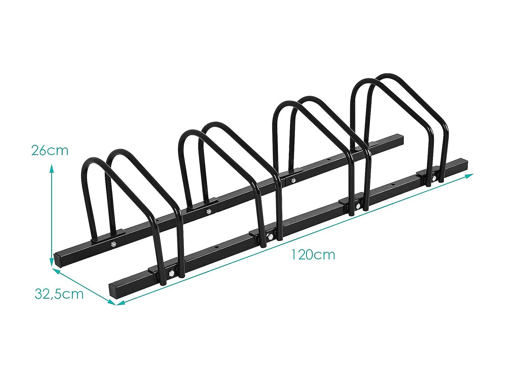Râtelier 4 Vélos en Acier Fixation au Sol ou Mur 120x32.5x26CM Résistant aux Intempéries Antirouille Ecole Commerce Noir
