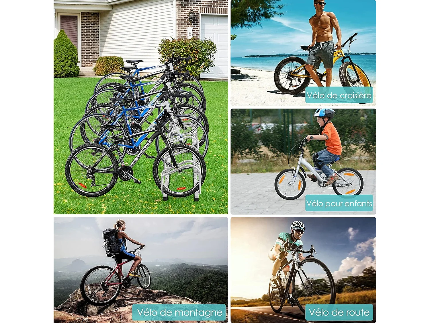 Support de Rangement pour Vélos, SucceBuy Support de Sol pour 10 Vélos, Rangement Double Face pour Garages, Cours, Rues