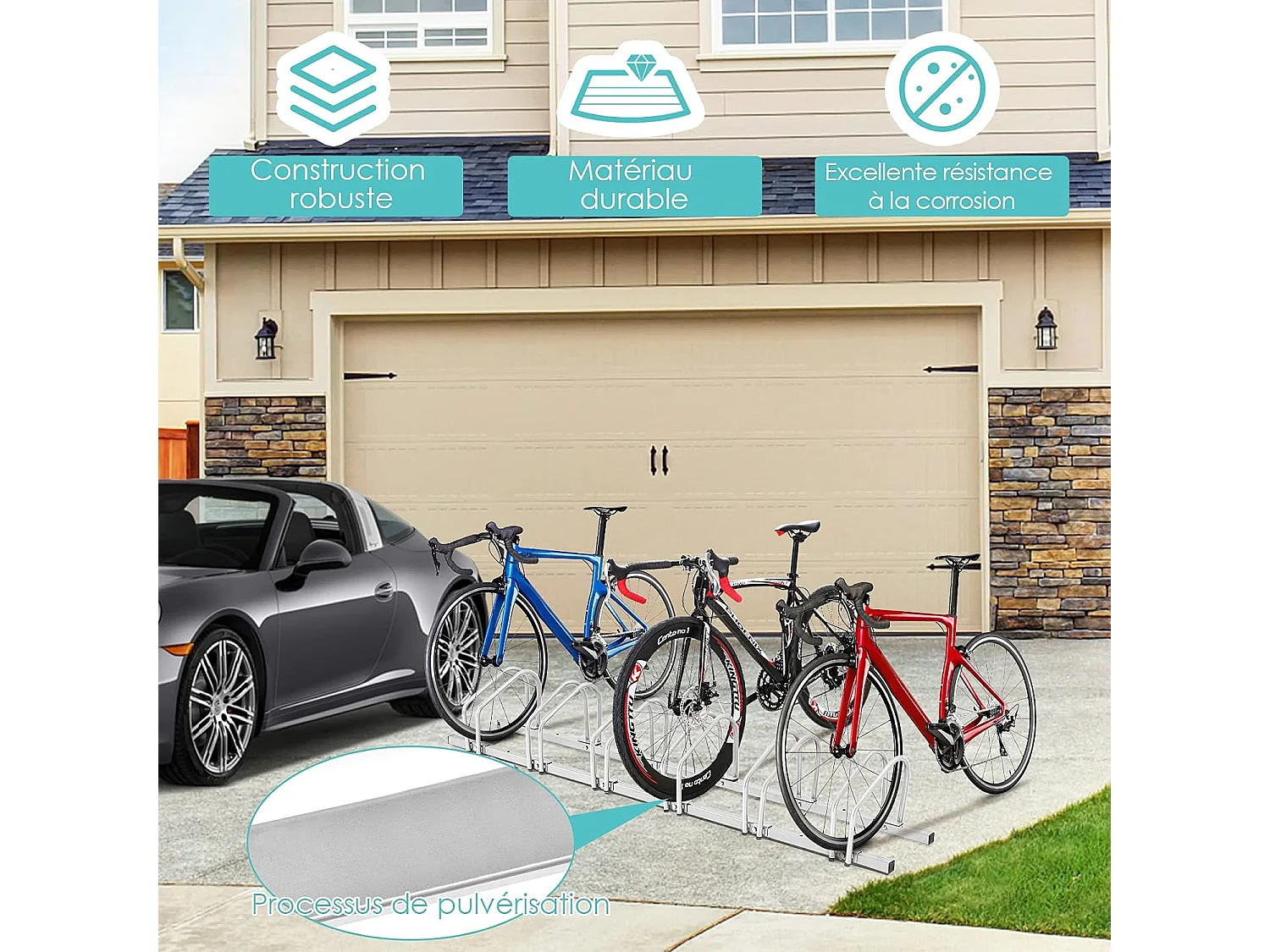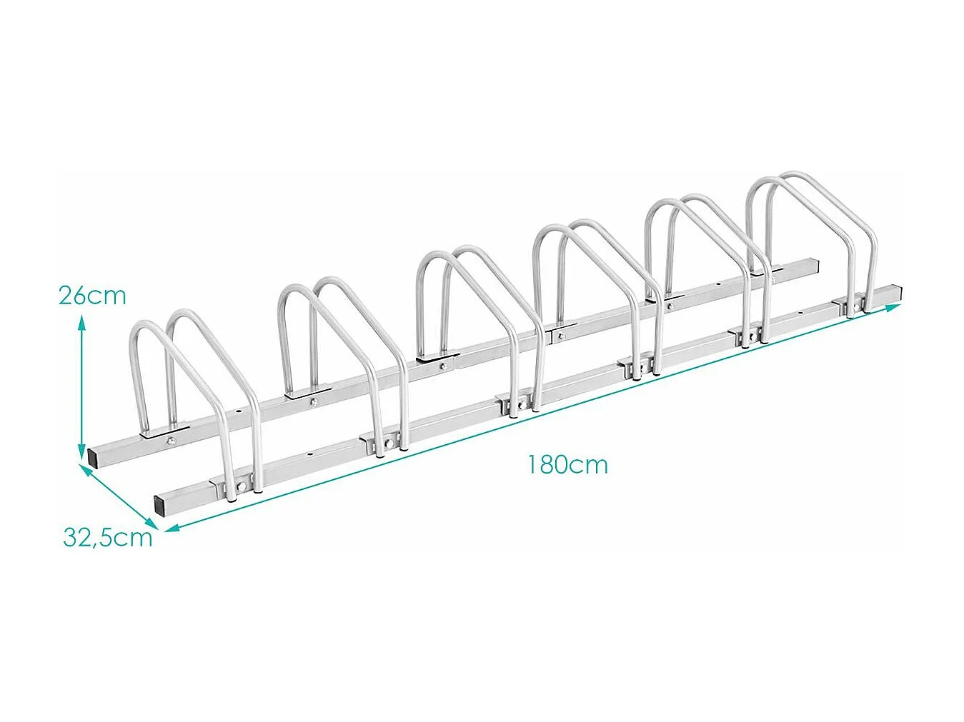Râtelier 6 Vélos en Acier Fixation au Sol ou Mur 180x32.5x26CM Résistant aux Intempéries Antirouille Ecole Commerce Argent