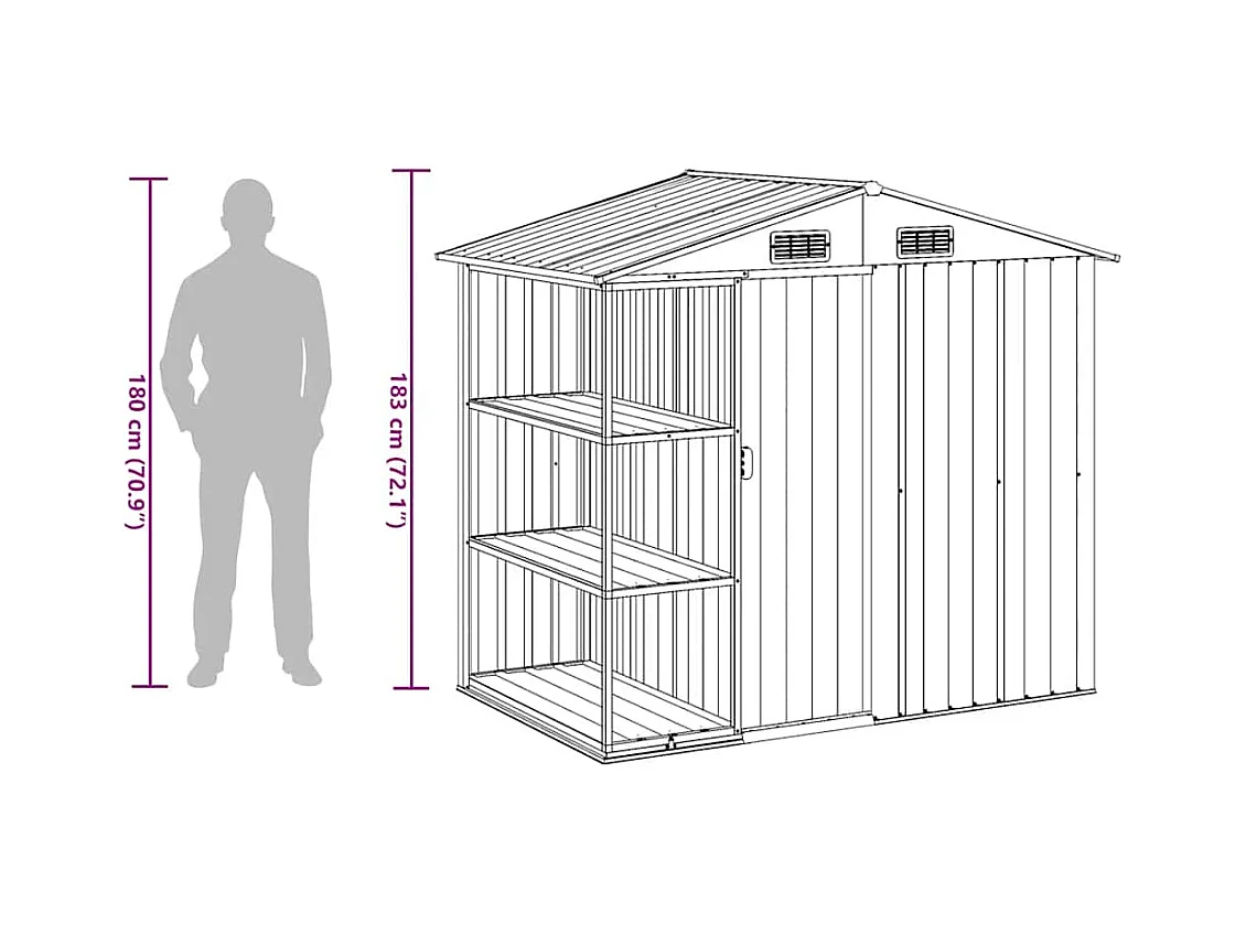 Jendaris Abri de jardin Gris 180,5x97x209,5 cm Acier galvanisé