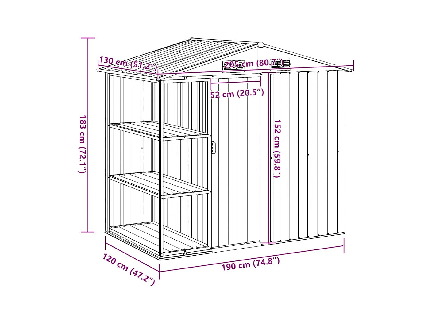 Iisakki Abri de jardin Anthracite 205x129x183 cm Acier galvanisé