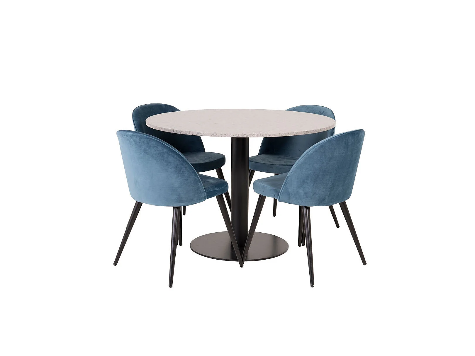 RazziaGR ensemble table, table terrazzo gris et 4 Velvet chaises Velours bleu, noir.