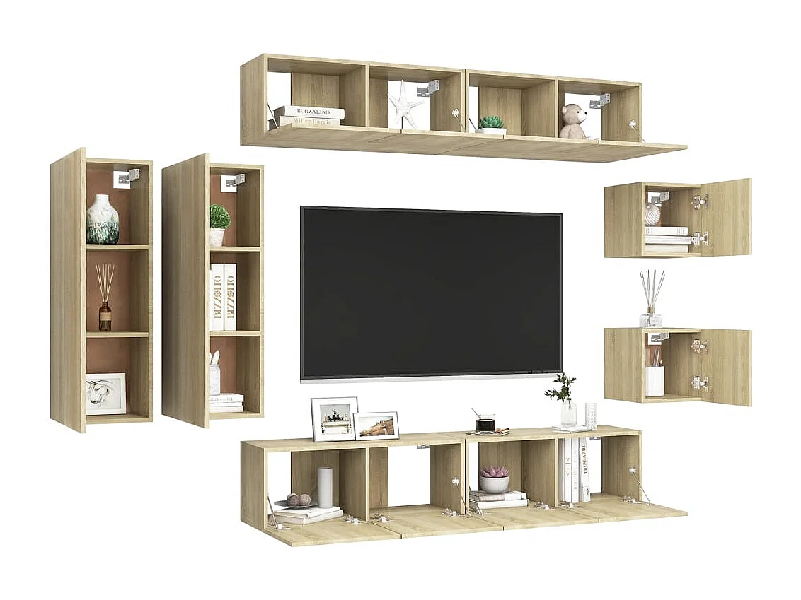 Niort Ensemble de meuble TV 8 pcs Chêne sonoma Bois d'ingénierie