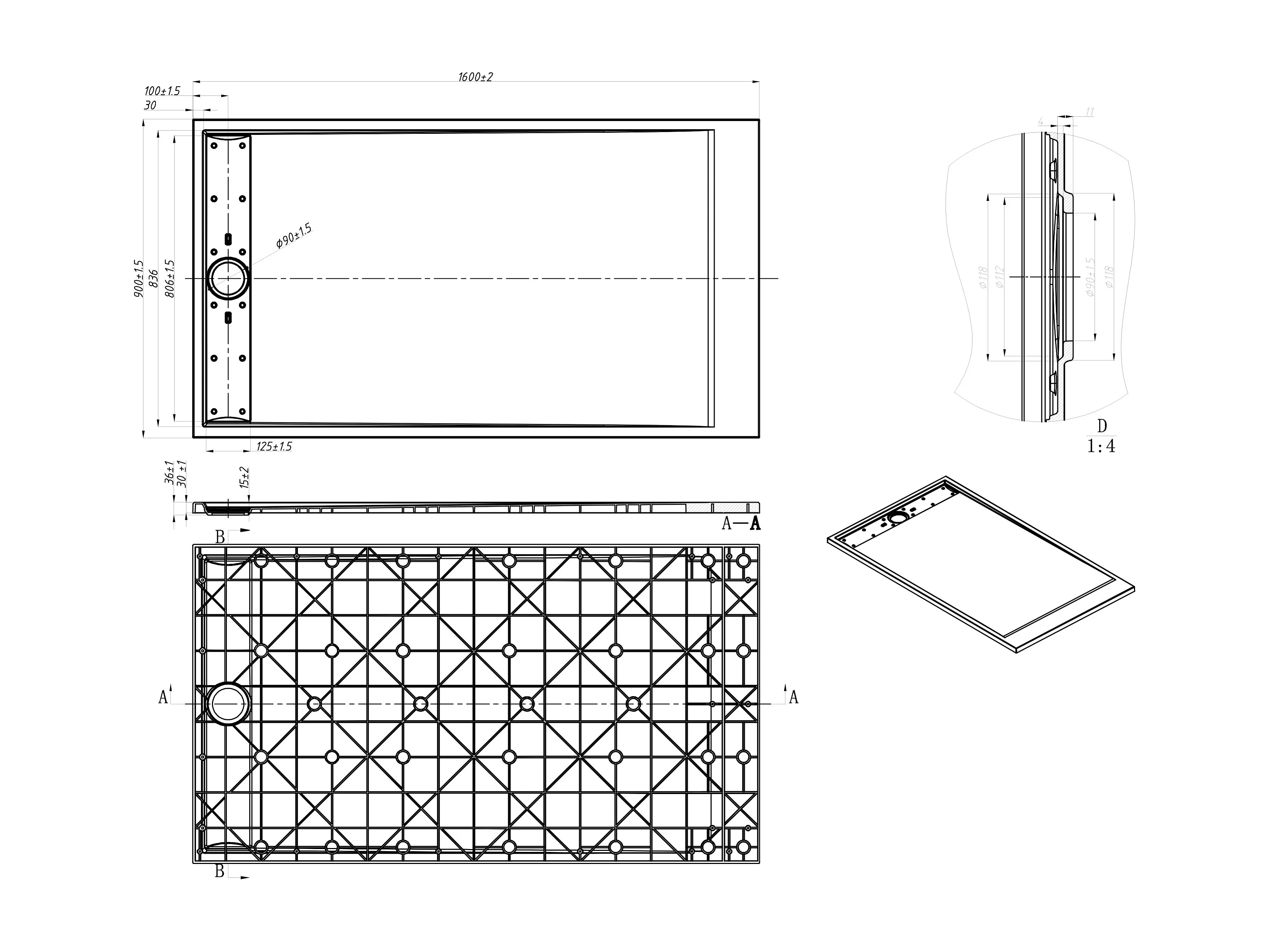 Receveur de douche extra plat à poser ou à encastrer recoupable en résine SMC - Noir - 160 x 90 cm - LYROSA