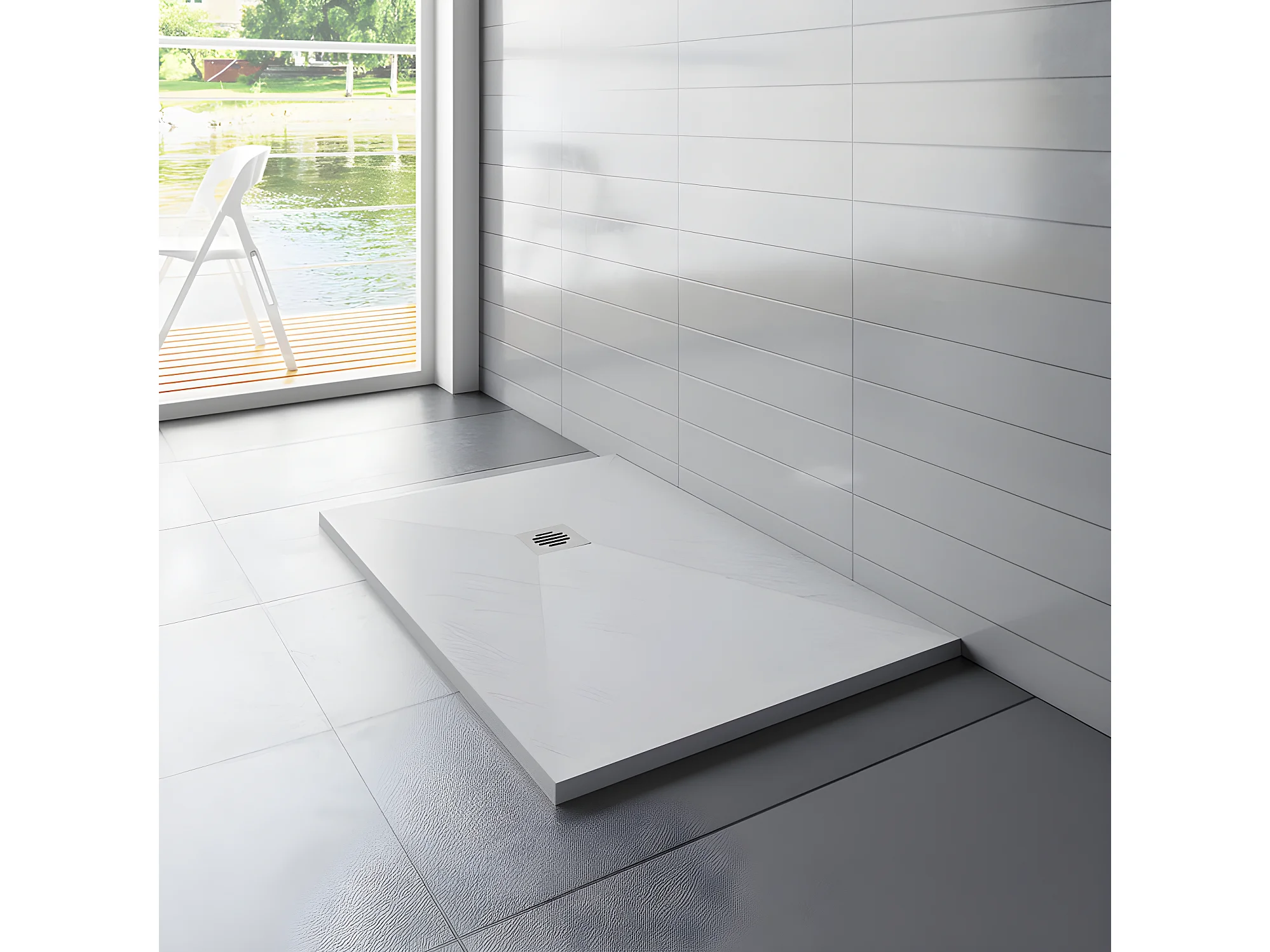 Receveur de douche blanc 120x90x3cm rectangulaire, Extra-plat, gel coat, bac à douche anti-dérapant Modèle Classique