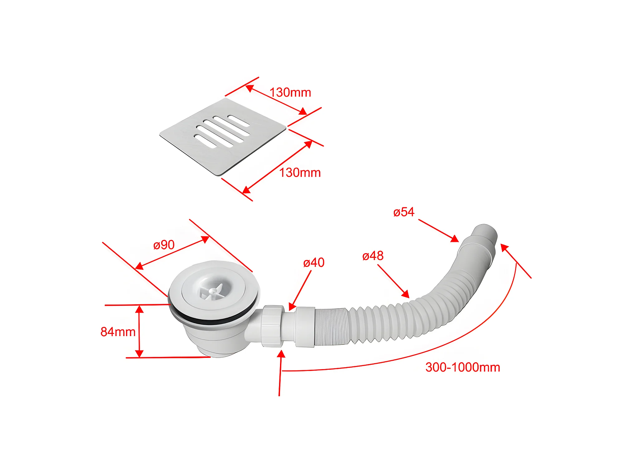 Tuyau de bonde 90cm, siphon pour bonde de receveur, tuyau flexible