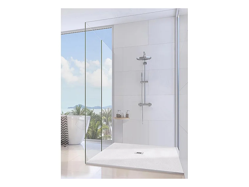 Receveur de Douche 70X160 cm Vulcano Line Extra Slim Blanc En Résine Synthétique et Poudre de Marbre Avec Vidange Libre