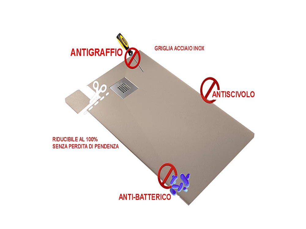 Receveur de Douche 80X110 cm Ligne Vulcano Extra Fin Couleur Anthracite En Résine Synthétique et Poudre de Marbre Avec Vidange Libre