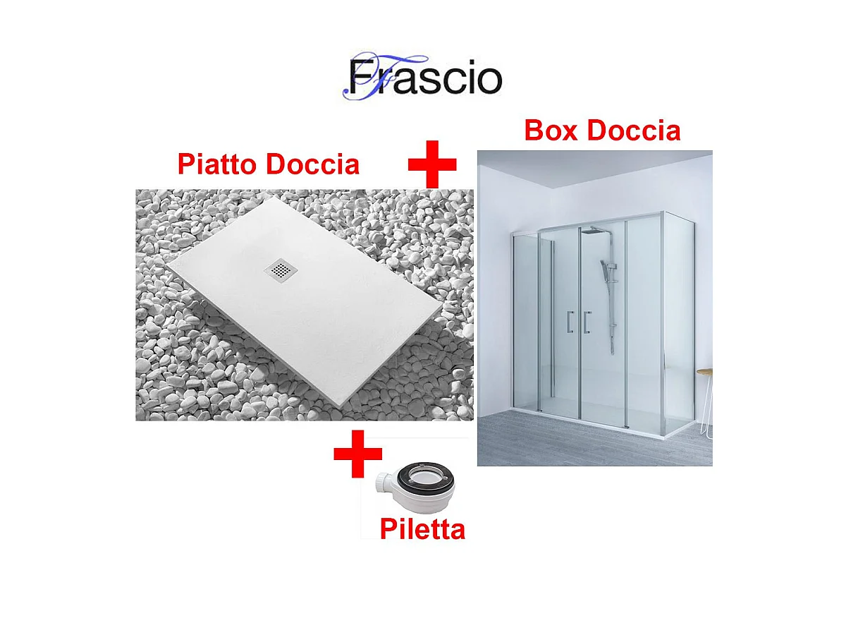 Receveur de Douche 85X180 cm Vulcano Line Slim Blanc +Cabine de Douche 85x180cm Hauteur 200cm Avec Une Glace Fixe et Ouverture Centrale avec 4 Glaces