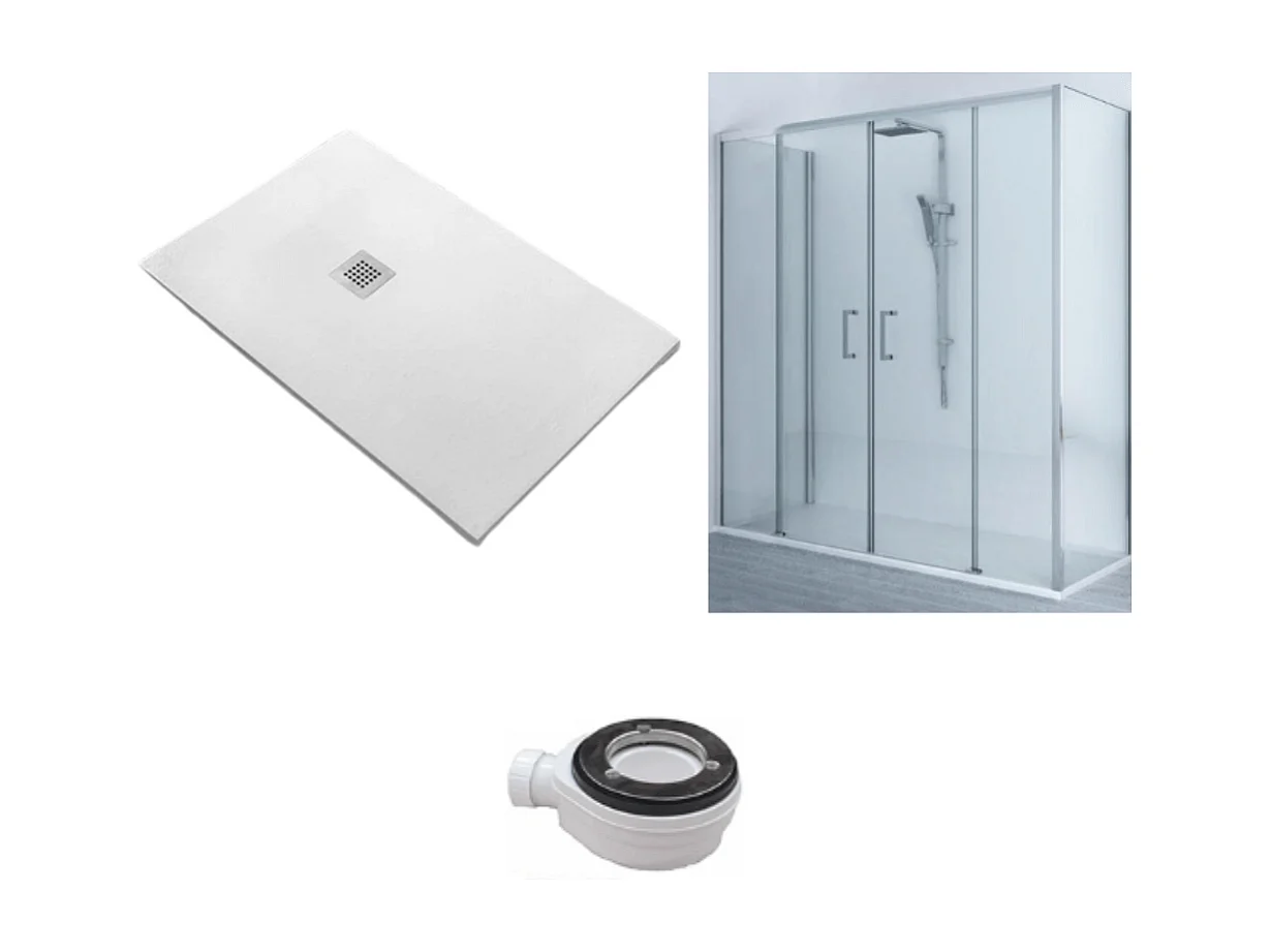 Receveur de Douche 90X145 cm Ligne Vulcano Extra Slim Blanc + Cabine de Douche 90x145 cm Haut 200 cm Avec Un Verre Fixe et Ouverture Centrale avec 4 Cristaux