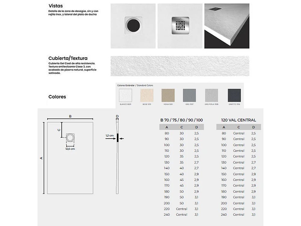 Receveur de douche en résine avec robinet et grille antidérapante à bord extra plat | Texture de la pierre | Blanc | 70 X 90 cm