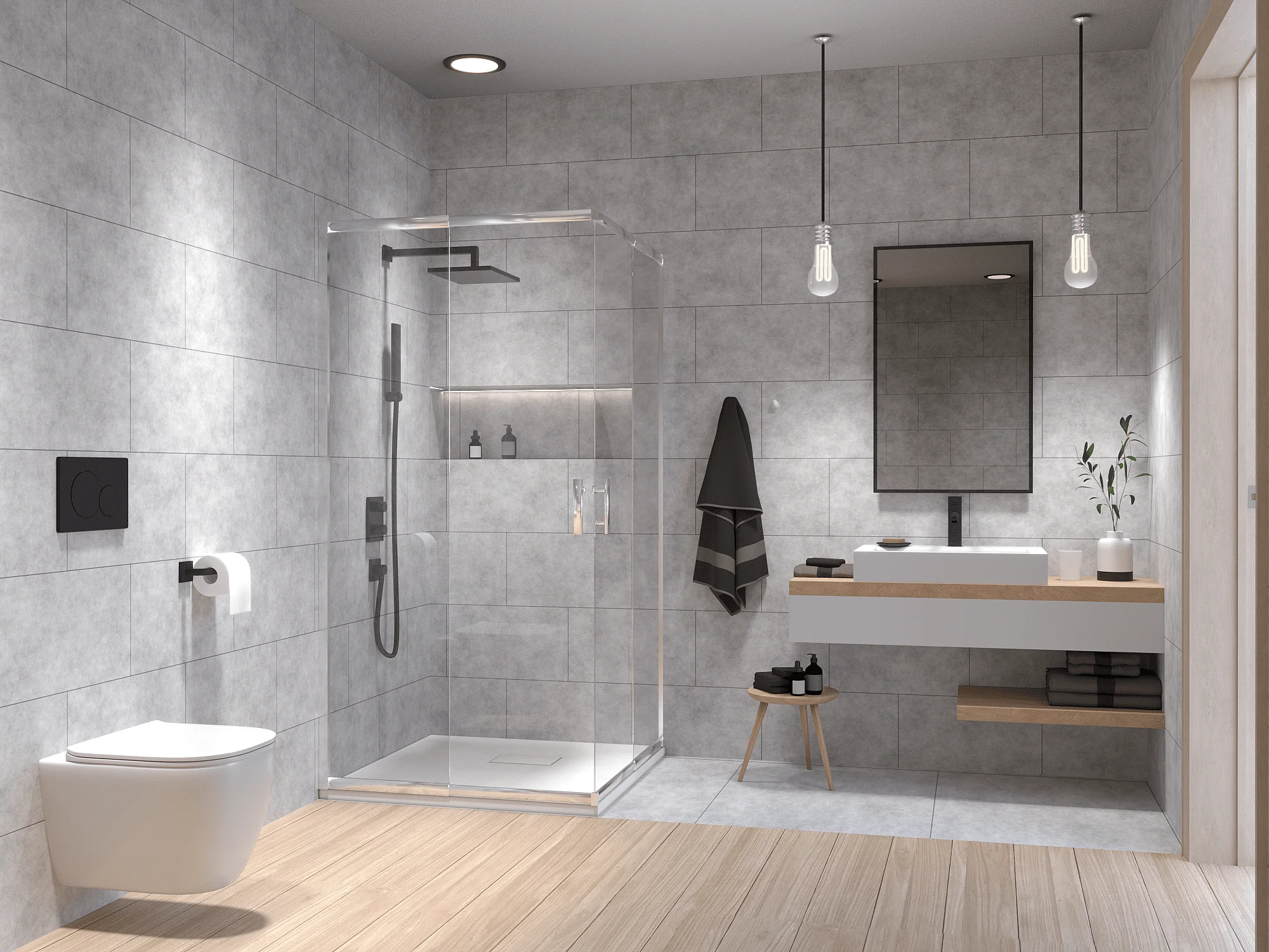 Receveur de douche VIDAR 80x80 cm Blanc + Cabine de douche Carrée HELA Chrome 80x80 190 cm Nano-Verre Transparent Trempé