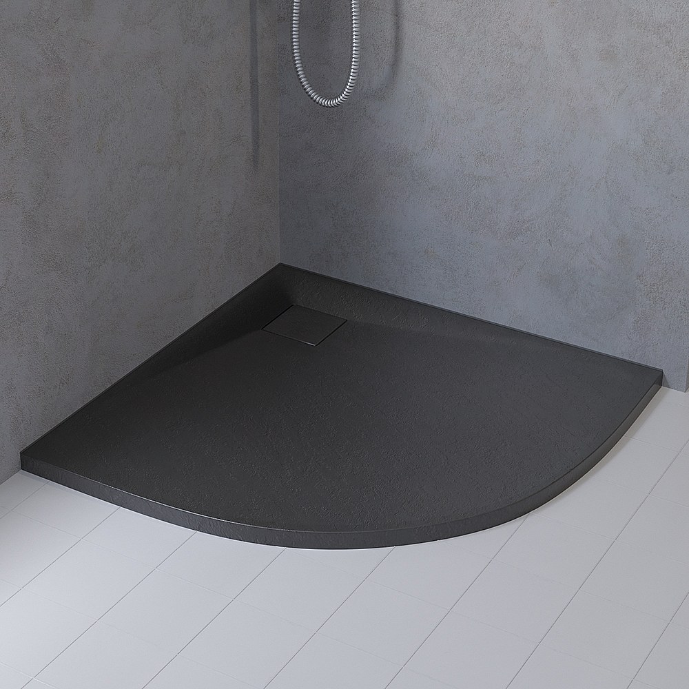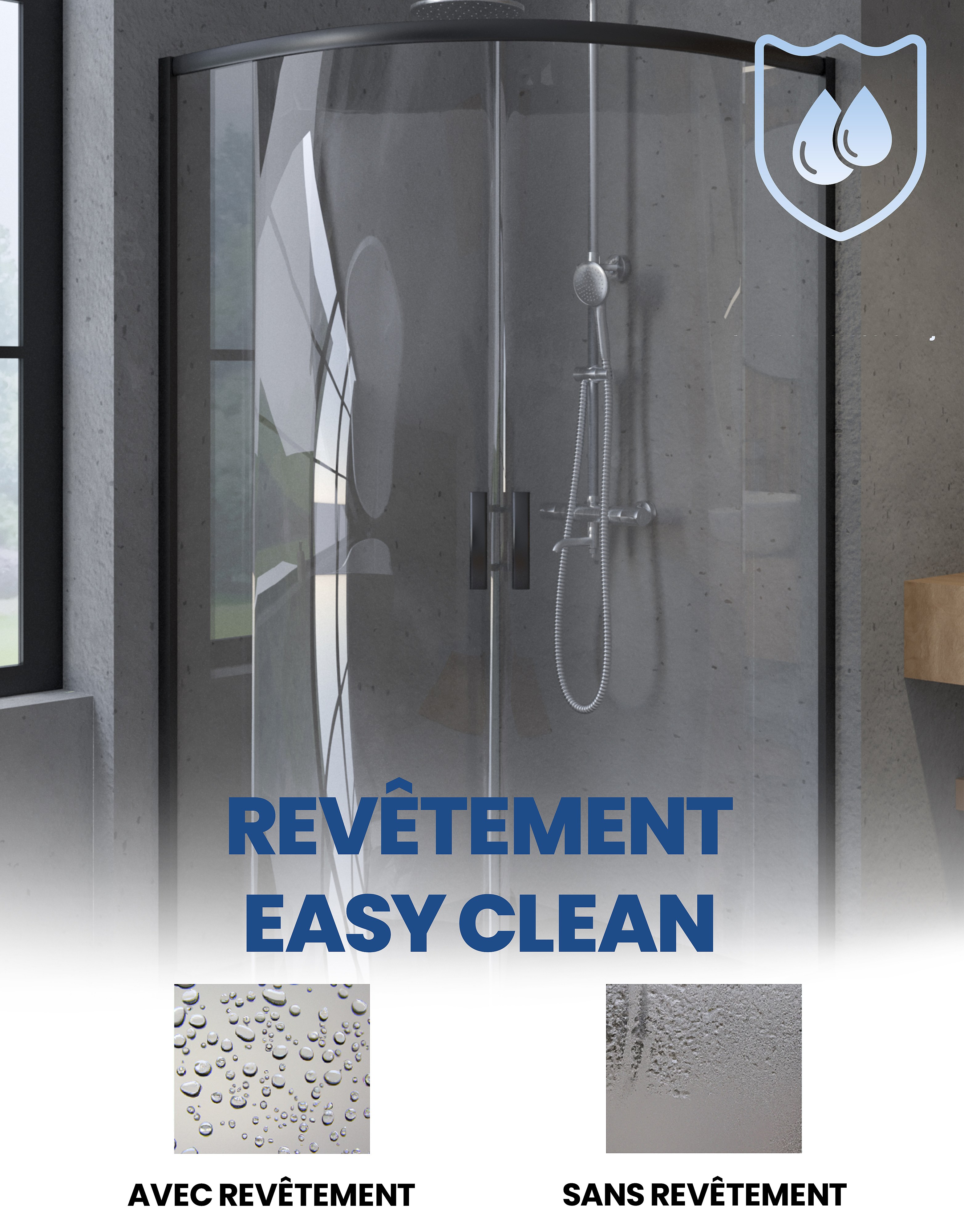 Receveur de douche VIDAR 80x80 cm Noir + Cabine de douche quart de cercle HELA Noir 80x80 190 cm Nano-Verre Transparent Trempé
