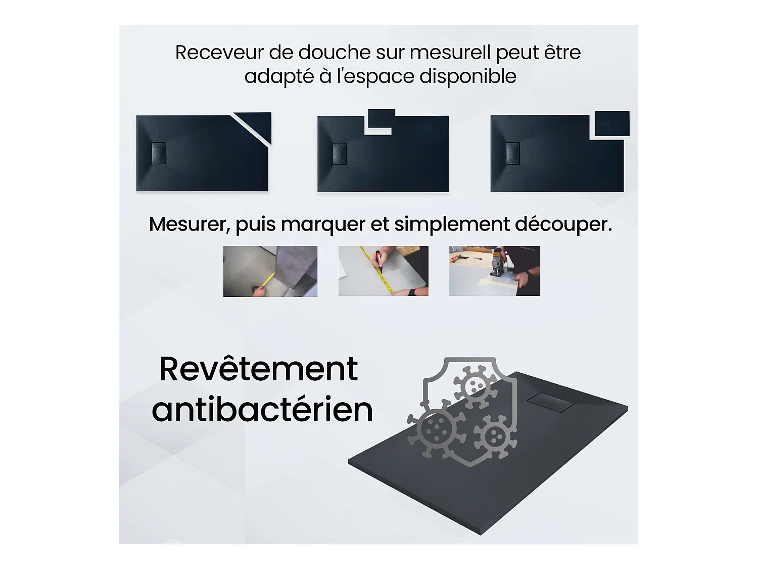 Paroi de douche fixe Noir 90 x 200cm - 8mm verre anticalcaire Style moderne + Étagère de Douche 90cm en alu + barre de fixation 70-120cm