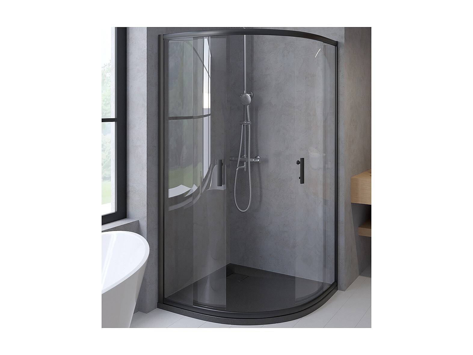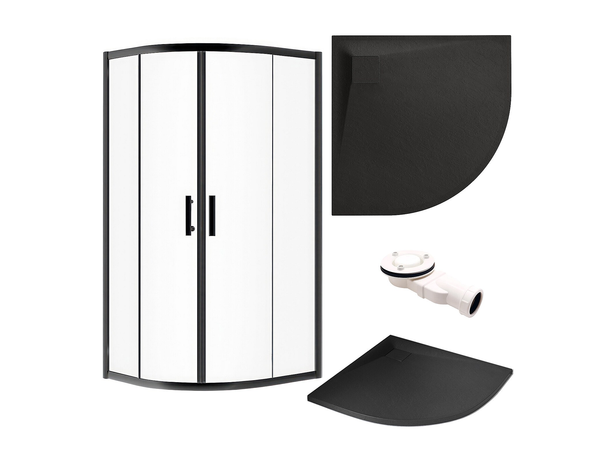 Receveur de douche VIDAR 90x90 cm Noir + Cabine de douche quart de cercle HELA Noir 90x90 190 cm Nano-Verre Transparent Trempé