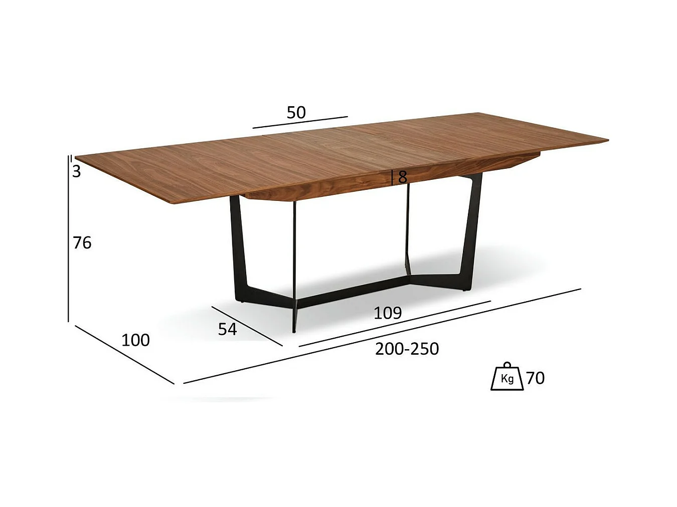 Table à manger extensible Tokyo - Rectangulaire - 6 à 10 couverts - MDF et métal - Noyer