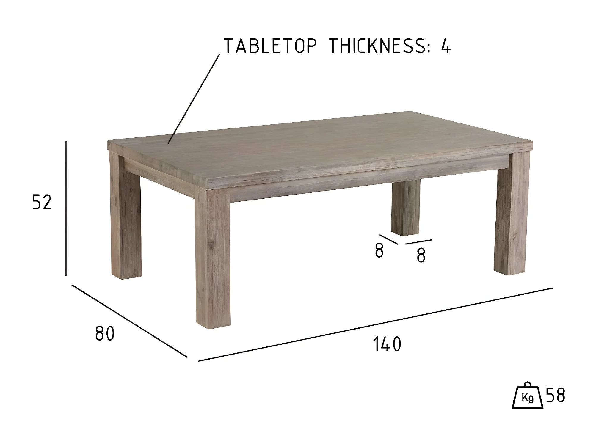 Table basse Alaska - Rectangulaire - Acacia massif et - Marron