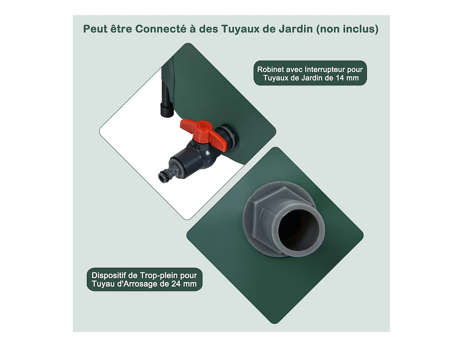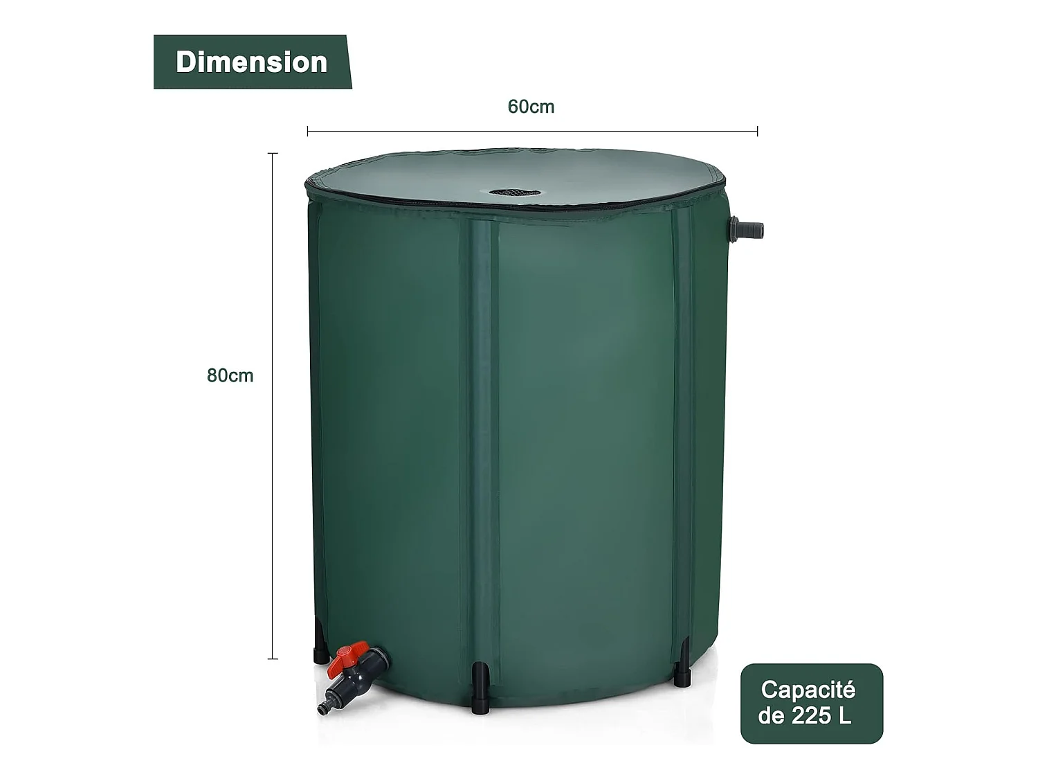 Récupérateur d’Eau de Pluie 225L -Pliable Réservoir à Eau Filtre Ø60 x 80 cm Vert