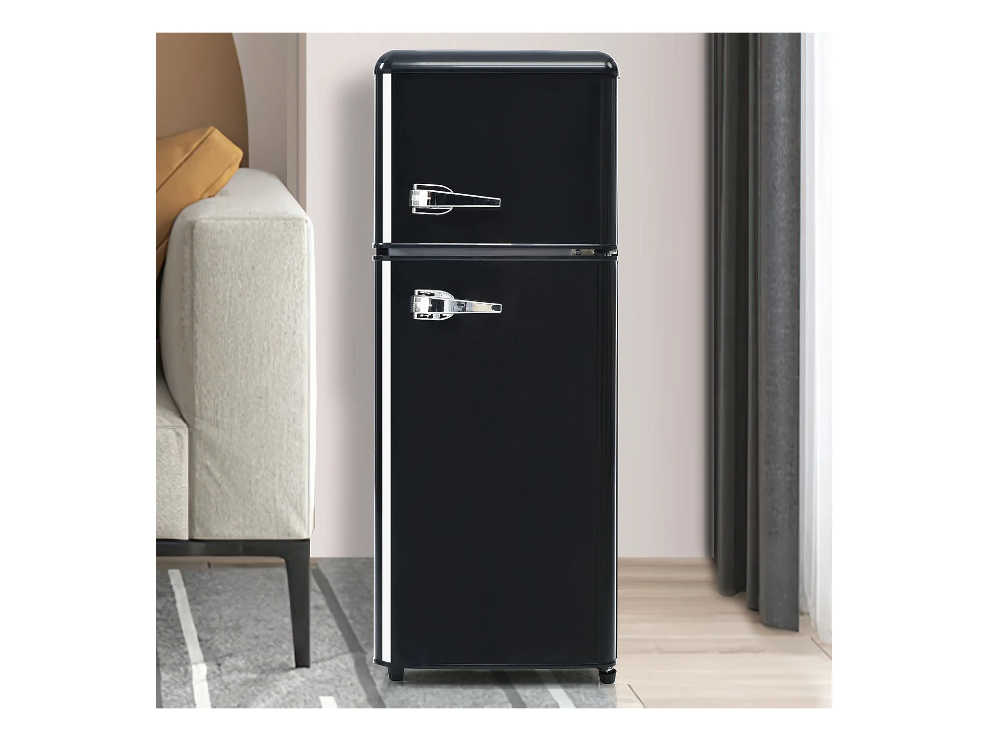 Réfrigérateur 46x45x91cm 2 Portes 72L Total 21L Congélateur LED Espace de rangement Matériel Iron et Noir