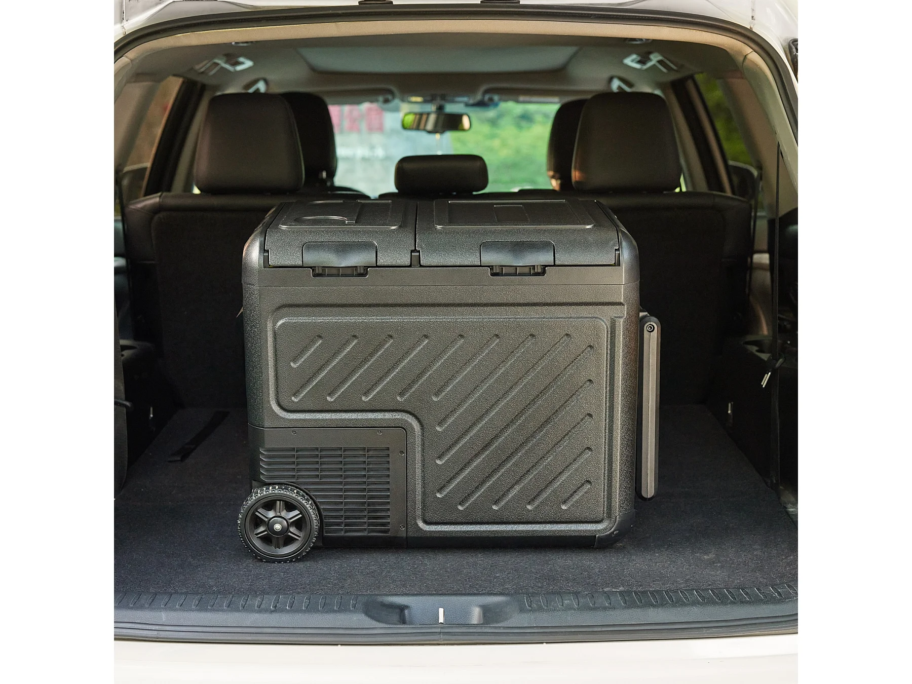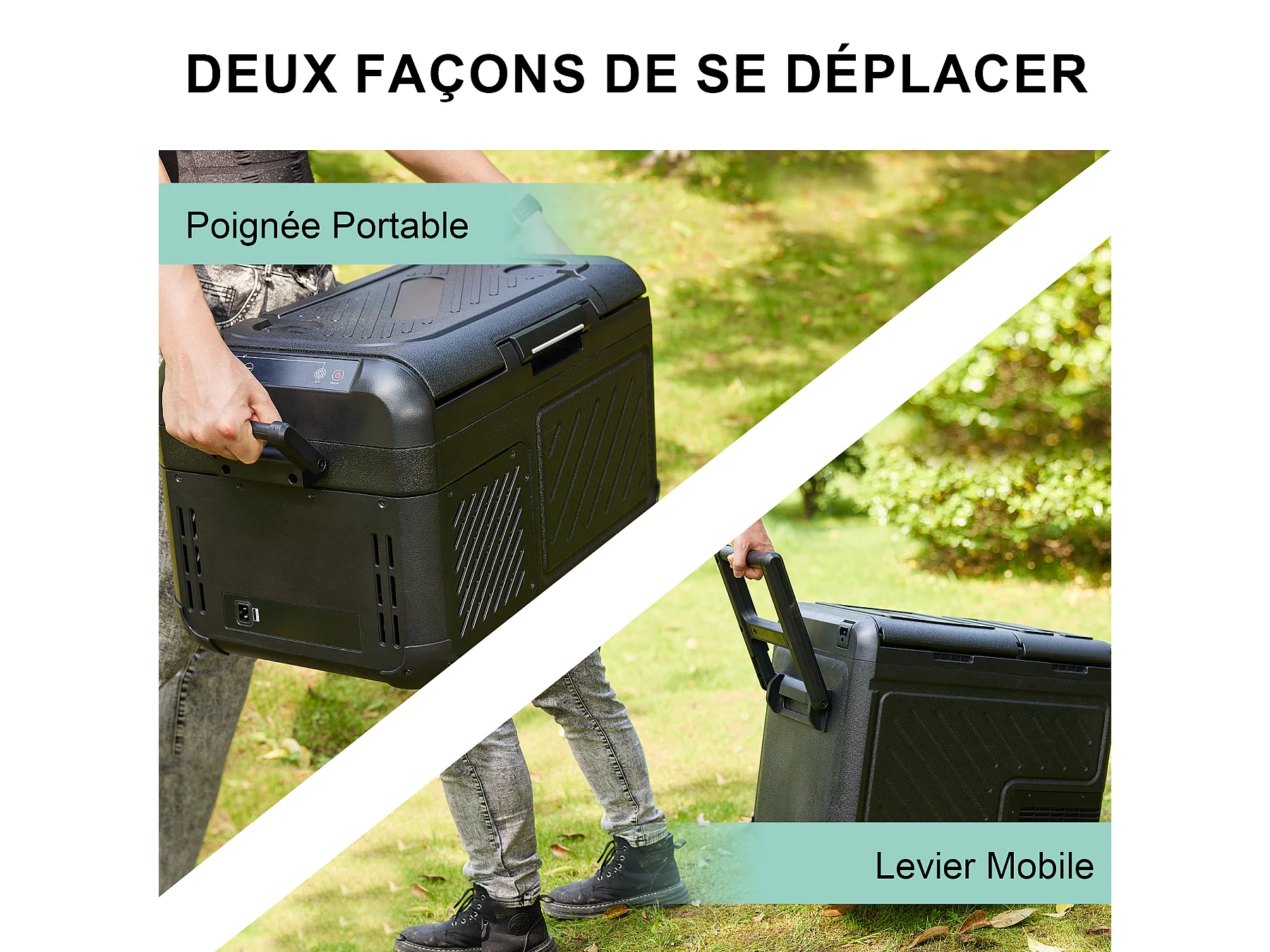 Glacière électrique double zone pour voiture, 45 L, 12 V, 240 V, portable, avec roulettes, noire