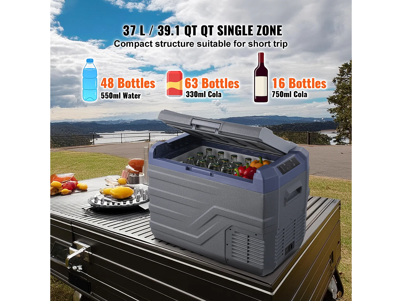 Réfrigérateur de Voiture SucceBuy Réfrigérateur-Congélateur Portable 45L pour Voiture, Compresseur à Zone Unique pour la Voiture, la Maison, Gris