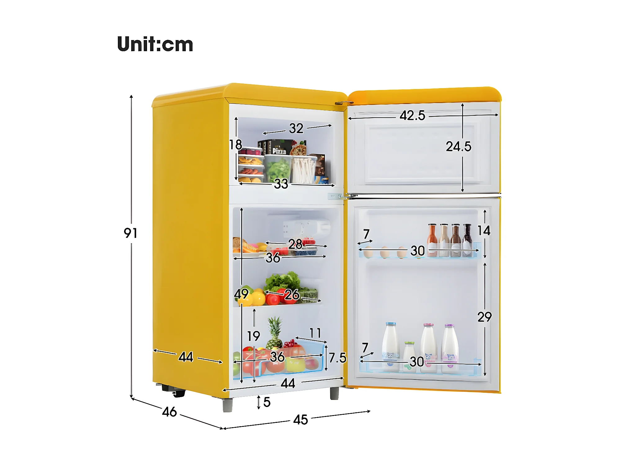 Réfrigérateur Retro avec double porte supérieure et inférieure, d'une capacité totale de 72 litres