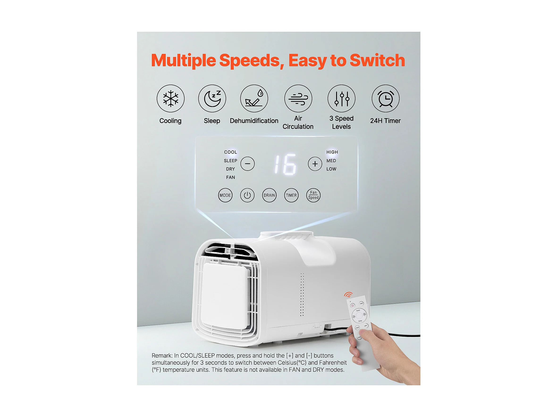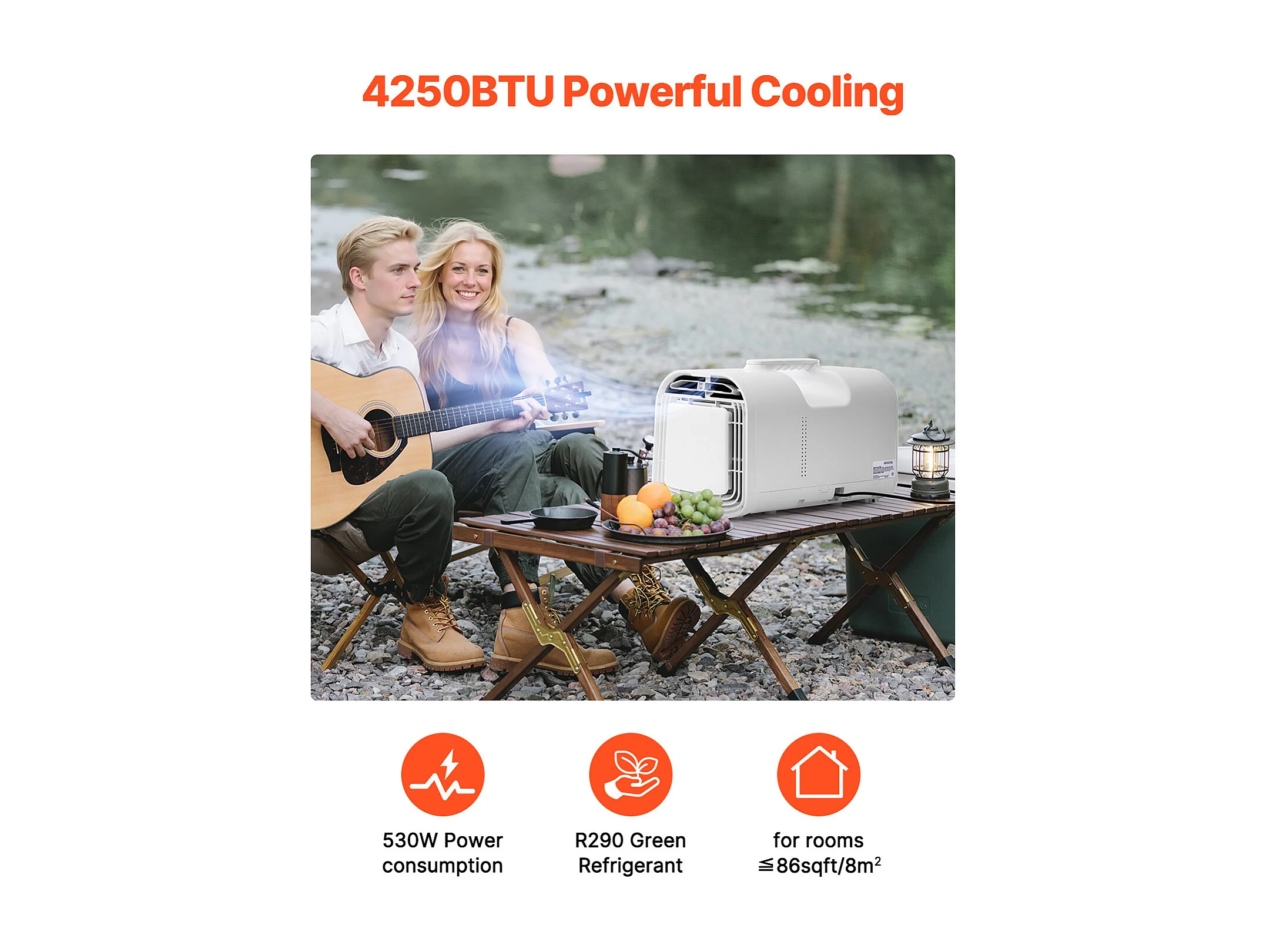 Refroidisseur d'Air Portable SucceBuy Climatiseur Mobile Refroidisseur d'Air 3 Niveaux 1,25 kW·h pour Camping-Cars