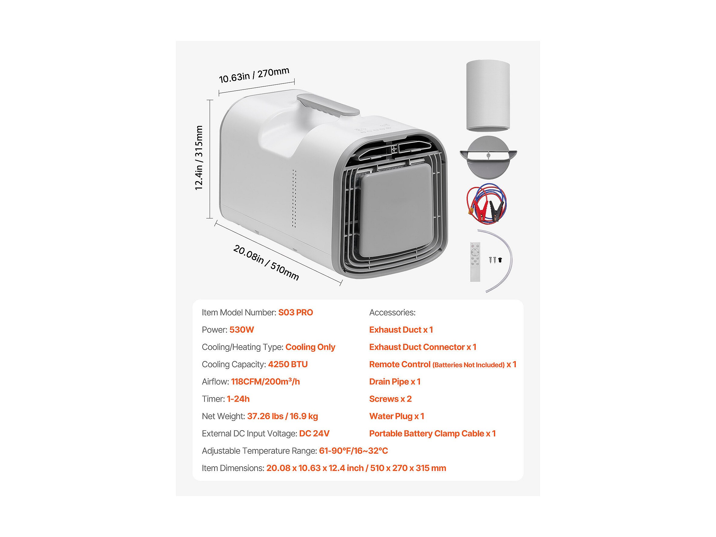 Refroidisseur d'Air Portable SucceBuy Climatiseur Portable 4 250 BTU AC/DC pour Camping, Dimensions : 510 x 270 x 315 mm