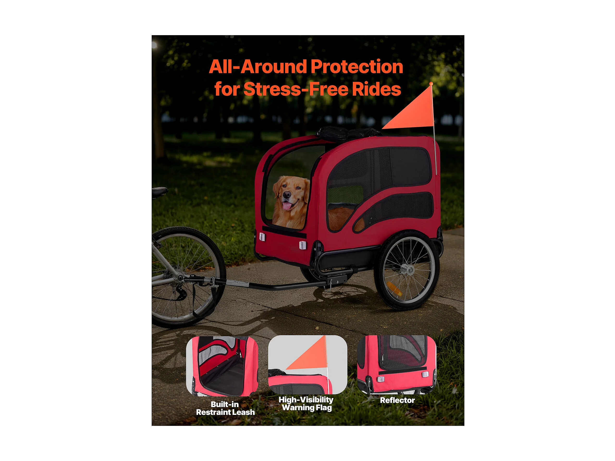 Chariot 2-en-1 pour chien, convertible en poussette ou remorque vélo, tissu Oxford, rouge (170x77x90 cm)