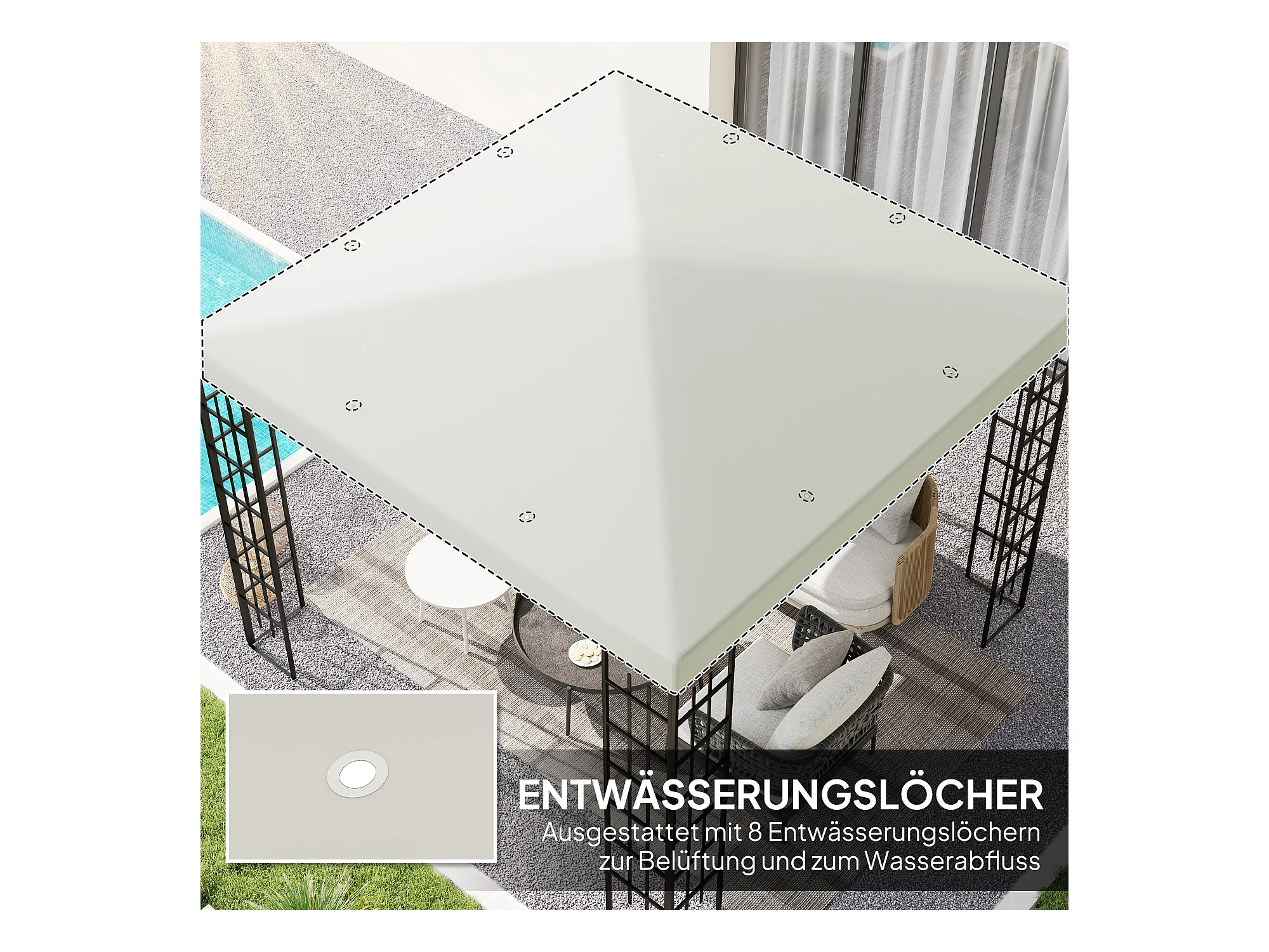 Remplaçant de toit pour pavillon 3 x 3 m, toit étanche en polyester, avec œillets de drainage, gris clair (298x298x1 cm)