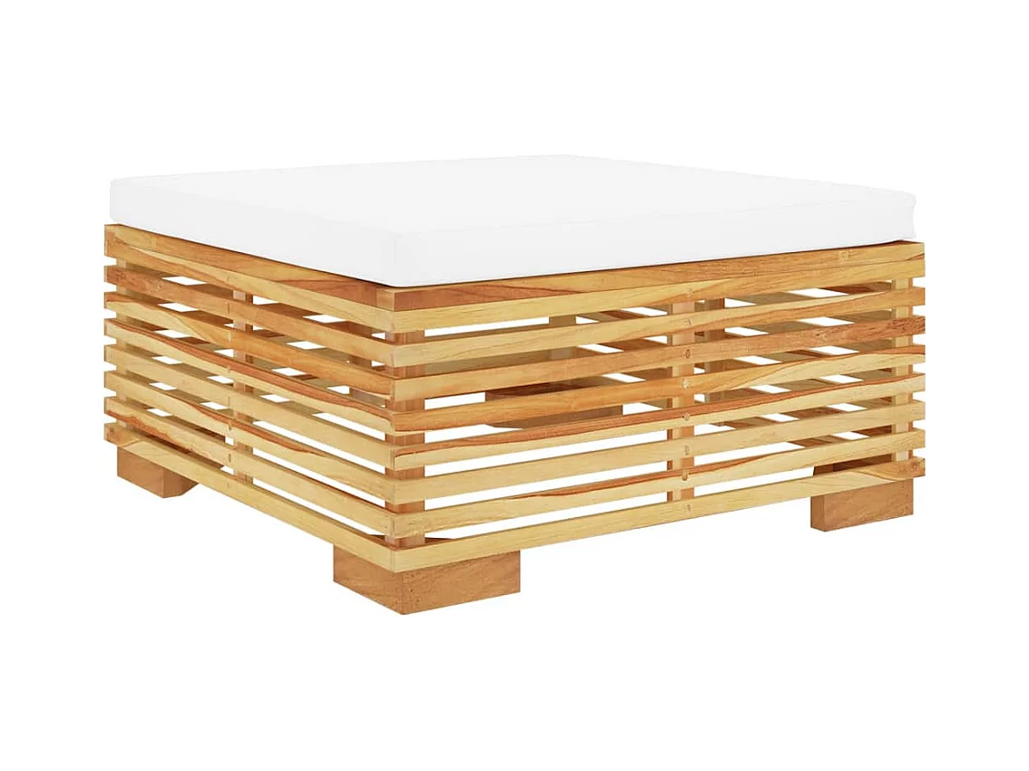Repose-pied de jardin avec coussin crème Bois de teck massif