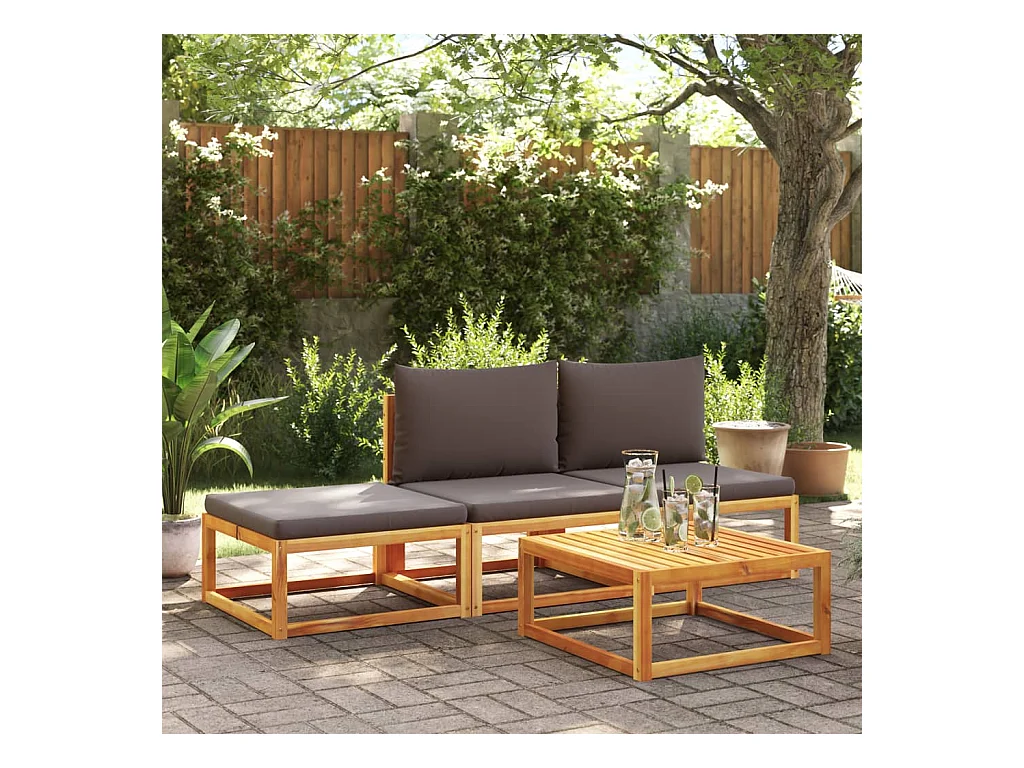 Canapé de jardin sans accoudoirs coussins bois massif d'acacia