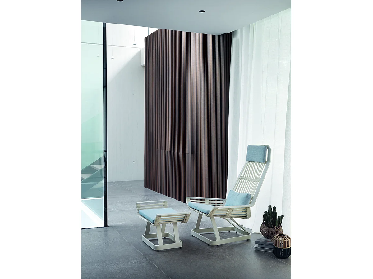 Repose-pieds en aluminium blanc avec coussin bleu