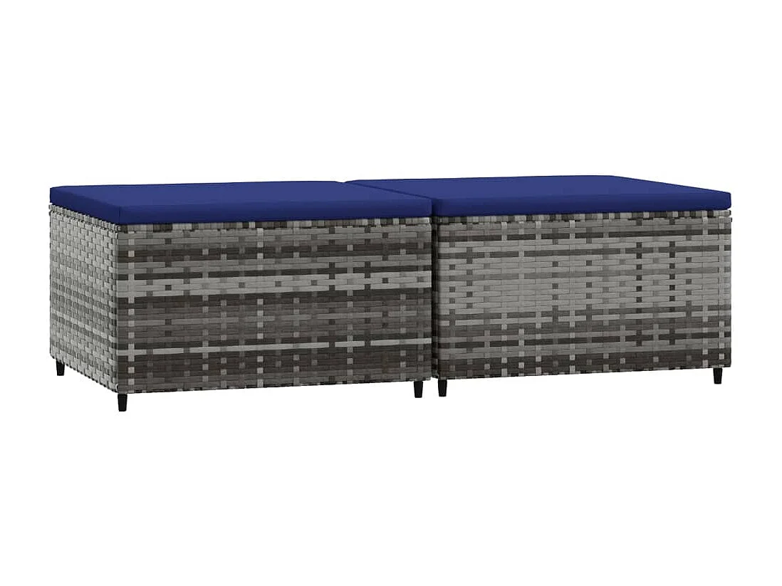 Repose-pieds de jardin et coussins lot de 2 gris résine tressée