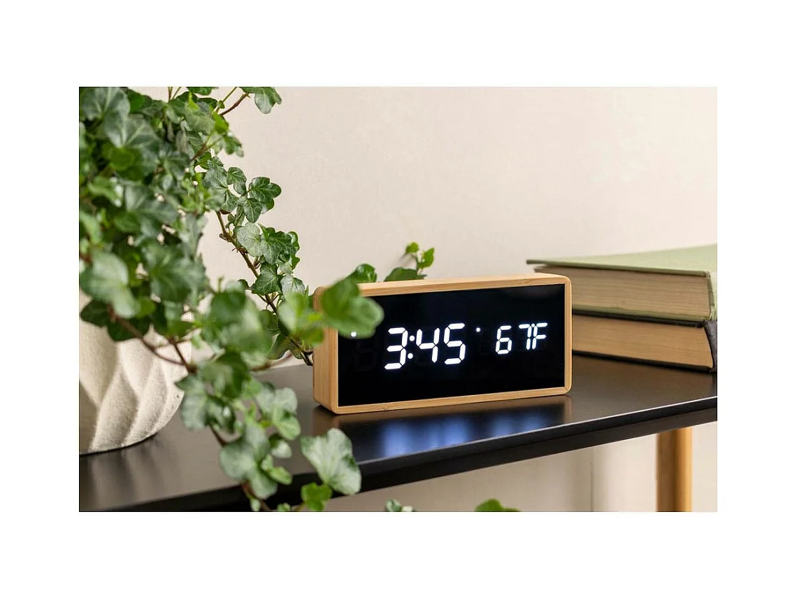 Réveil classique avec haut-parleur Bluetooth et chargeur de téléphone - Bambou