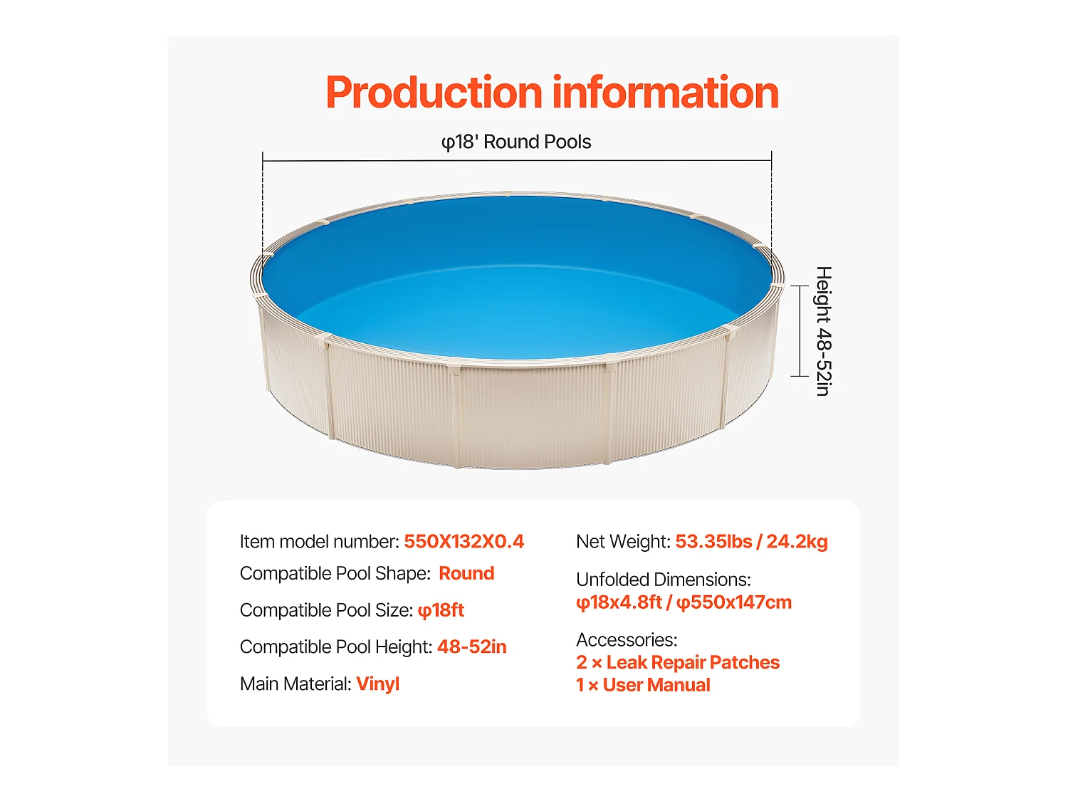 Revêtement de Piscine SucceBuy Ronde, Revêtement en Vinyle à Chevauchement, 550x147 cm