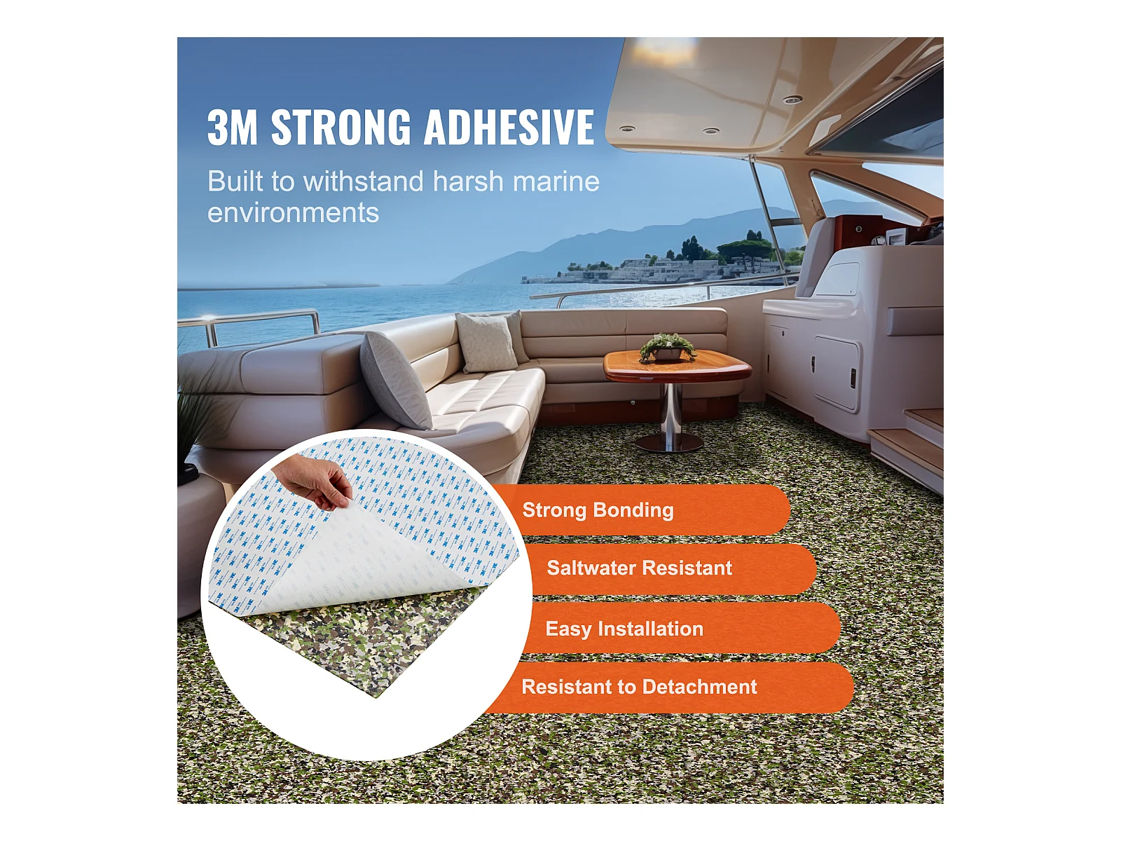 Revêtement de Sol SucceBuy Revêtement de sol en Mousse EVA pour Bateau, 240cm x 59.94cm, Antidérapant, Autocollant, Tapis Marin pour Bateaux, Yachts