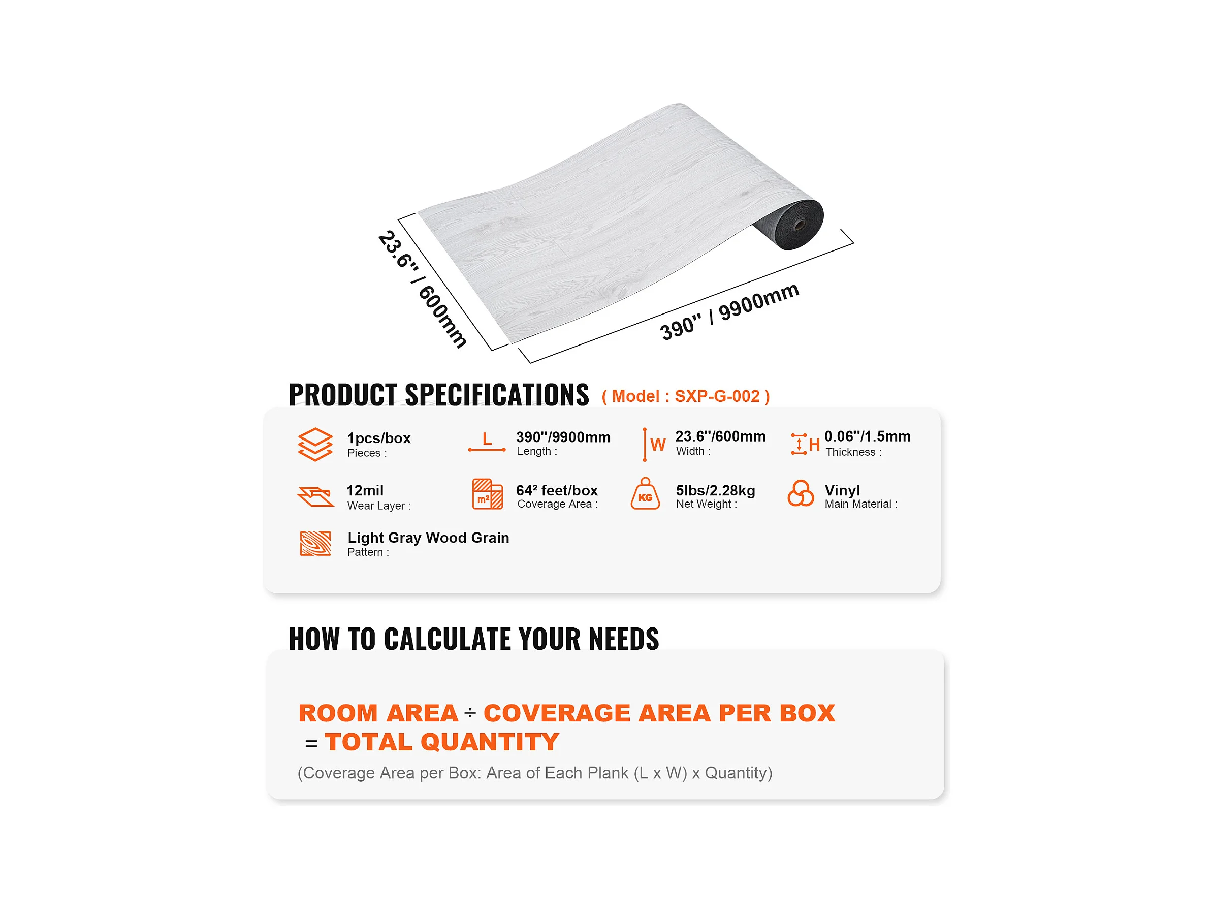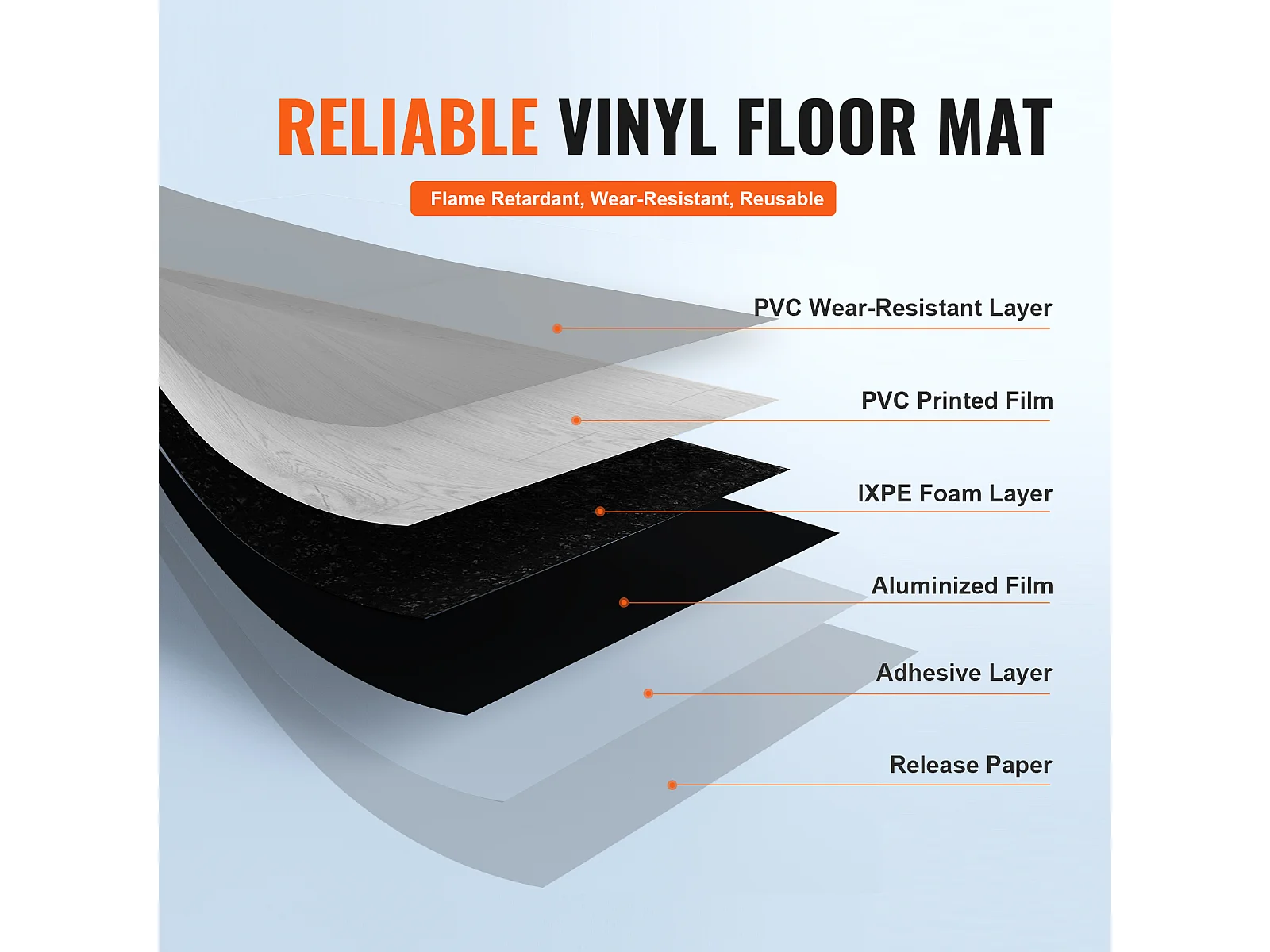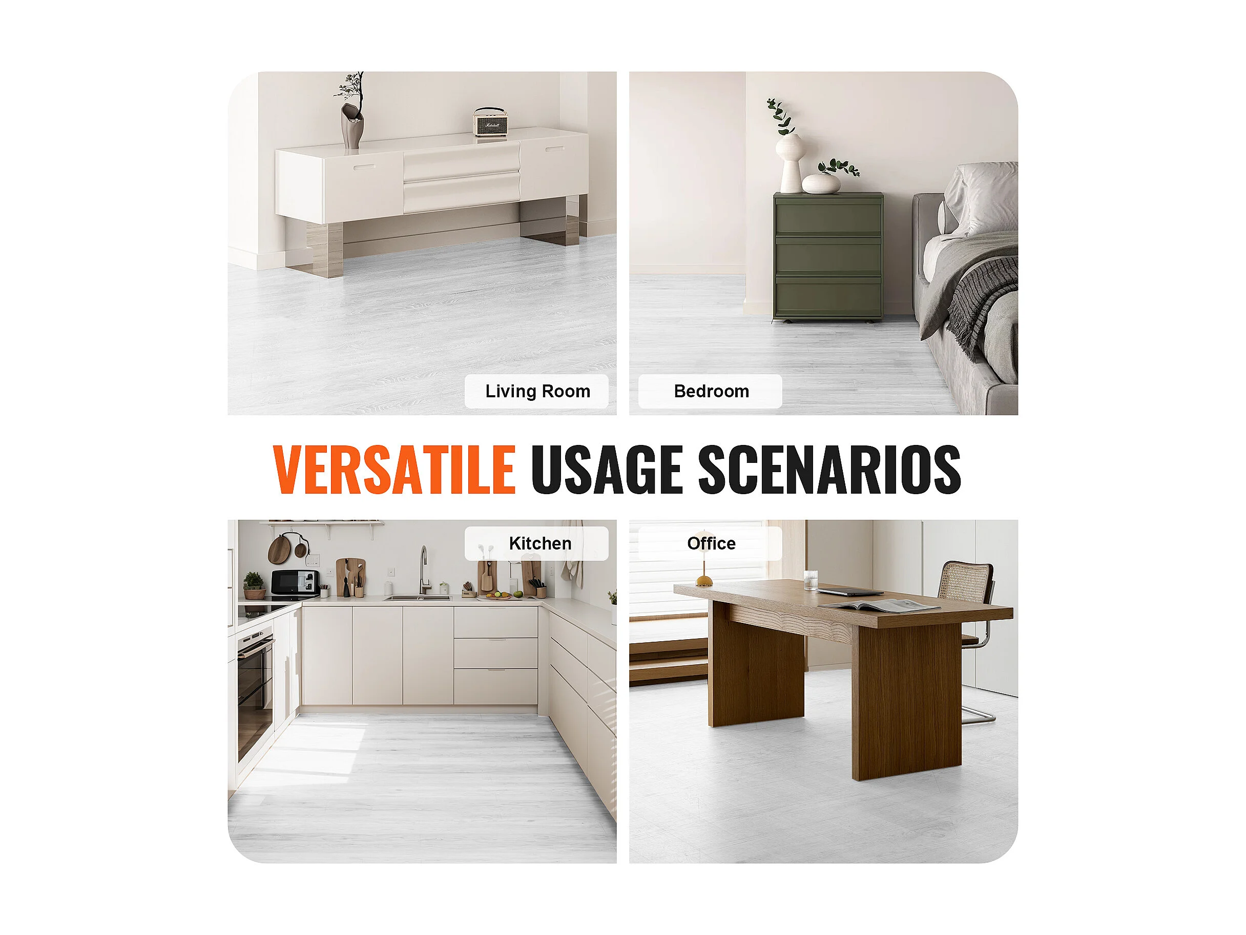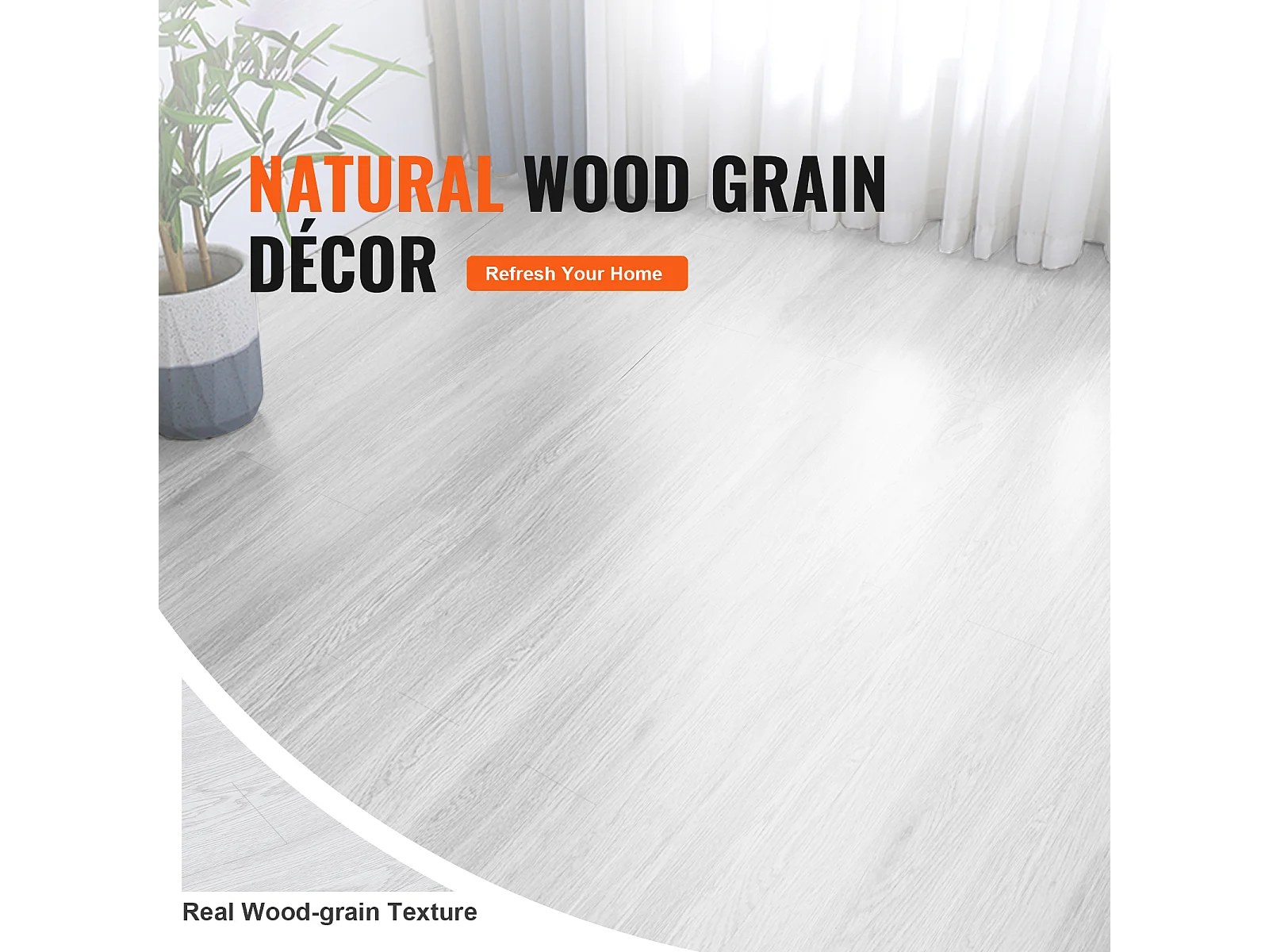 Revêtement de Sol SucceBuy en Vinyle Autocollants 82.55cm, Épaisseur 1.5mm, Grain de Bois Gris Clair, à Coller et Décoller, pour Salle à Manger