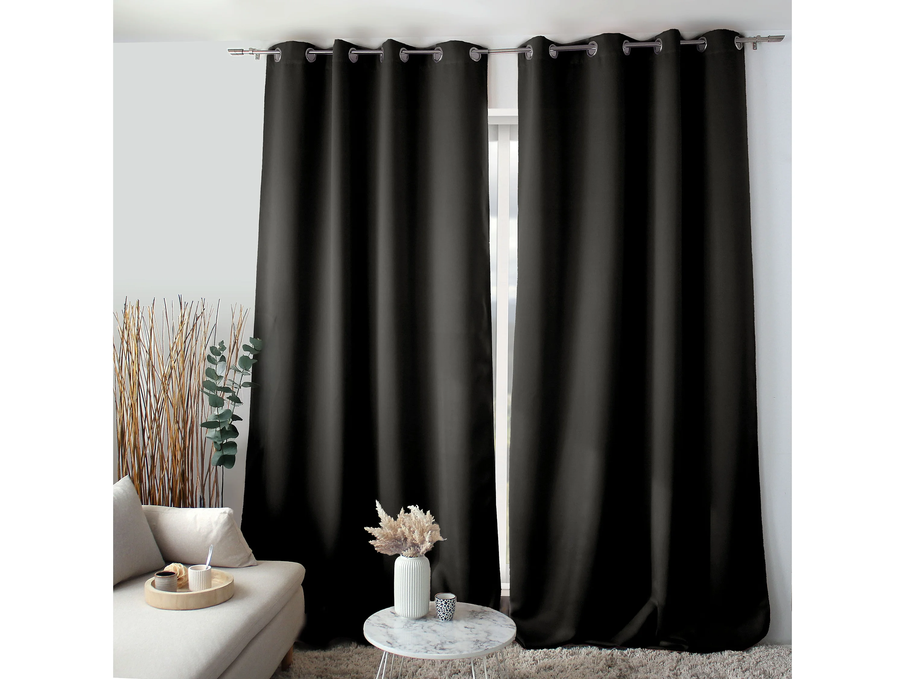2 rideaux occultant à œillets, noir, 140x240cm, 100% polyester, collection Réglisse
